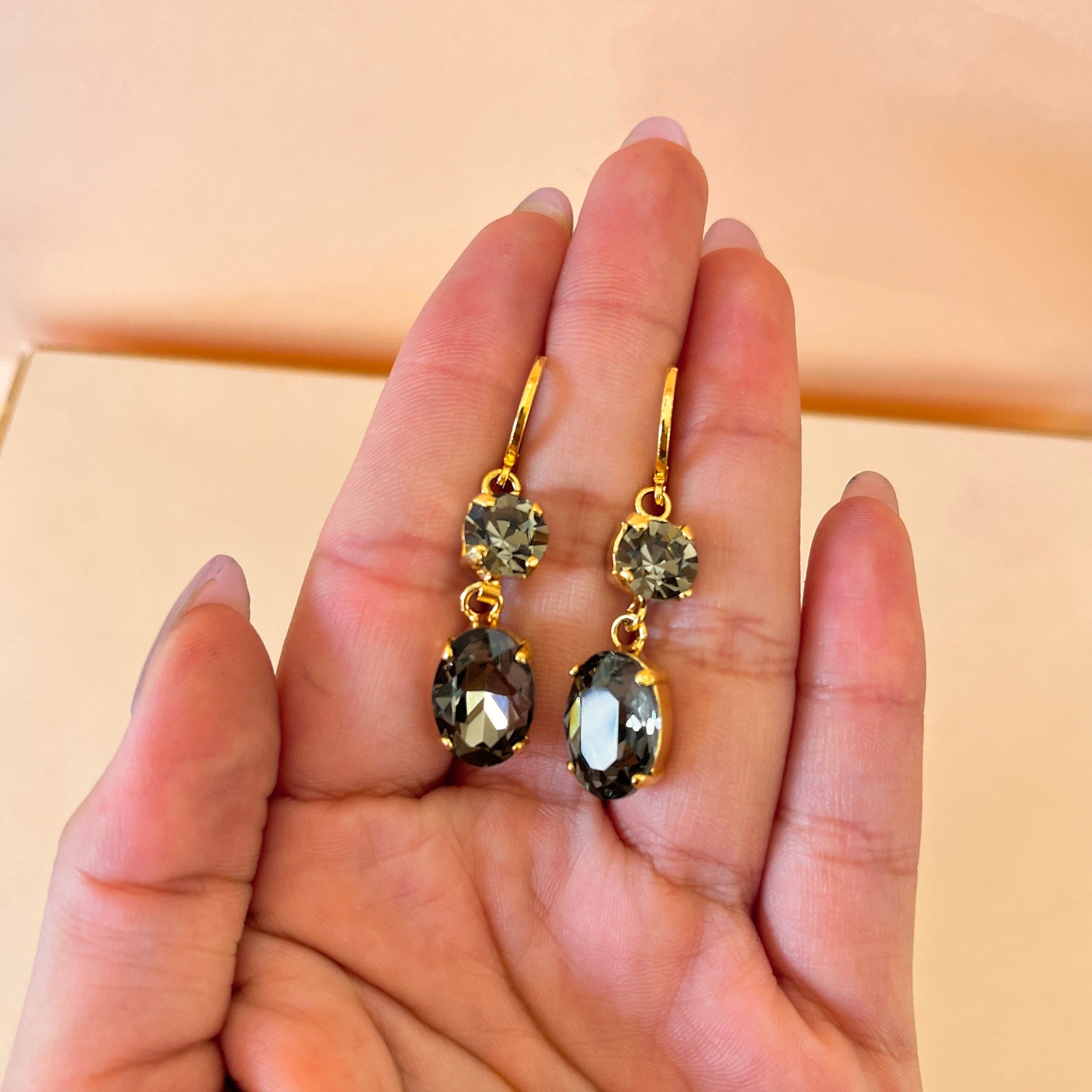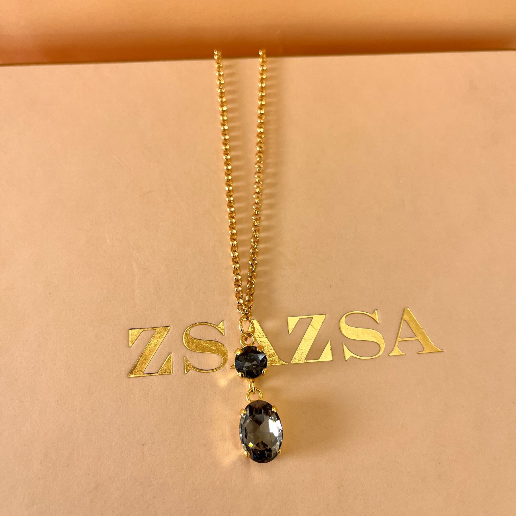 Enhance your style with the stunning grey preciosa crystals Set! The grey oval crystals paired with round grey crystals create a beautiful and unique contrast. The gold plated hooks and pendant add a touch of elegance and shine. Elevate any outfit with this gorgeous set.