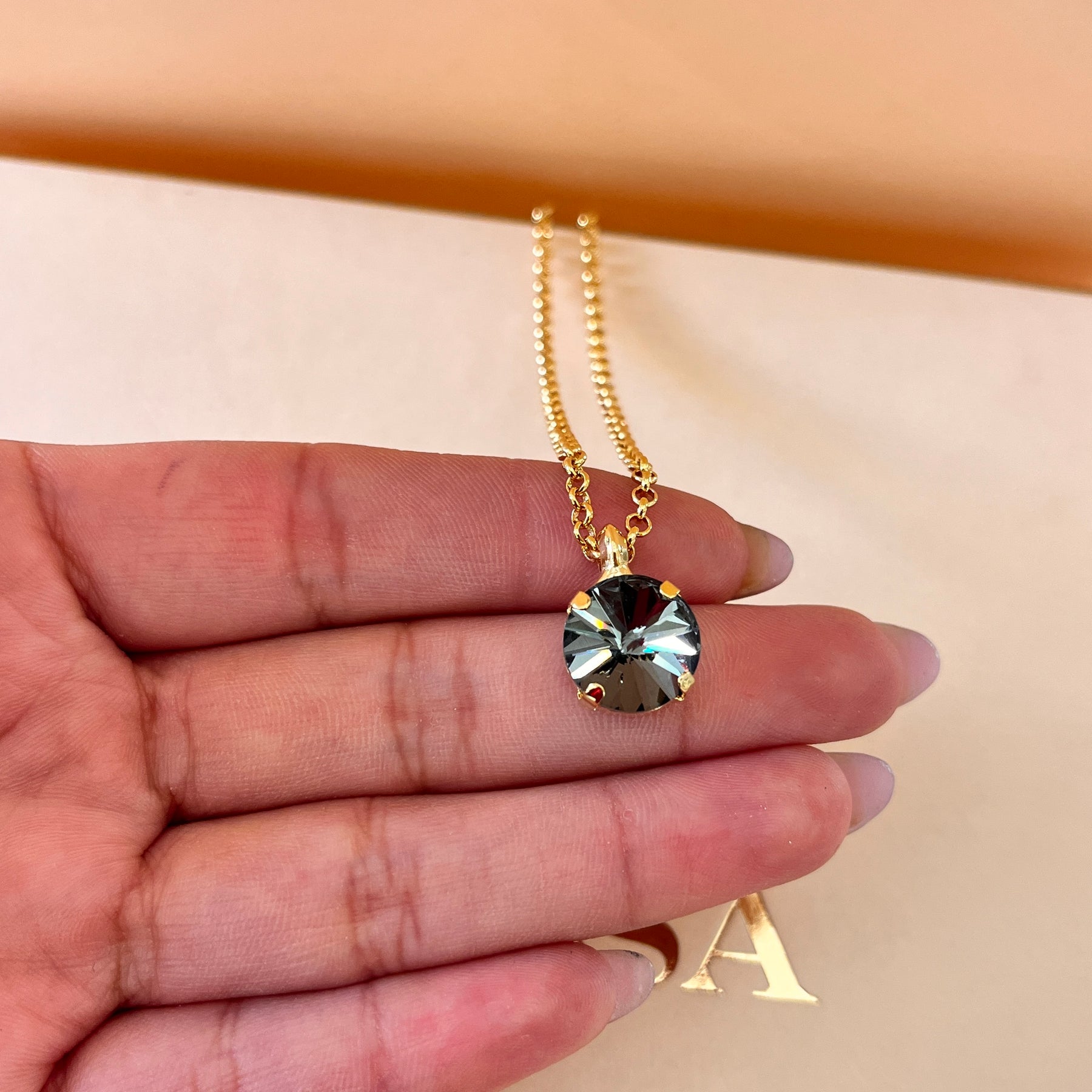 Enhance your style with the stunning grey round preciosa crystals Set! The grey round crystals create a beautiful and Classic style . The gold plated studs and pendant add a touch of elegance and shine. Elevate any outfit with this gorgeous set.