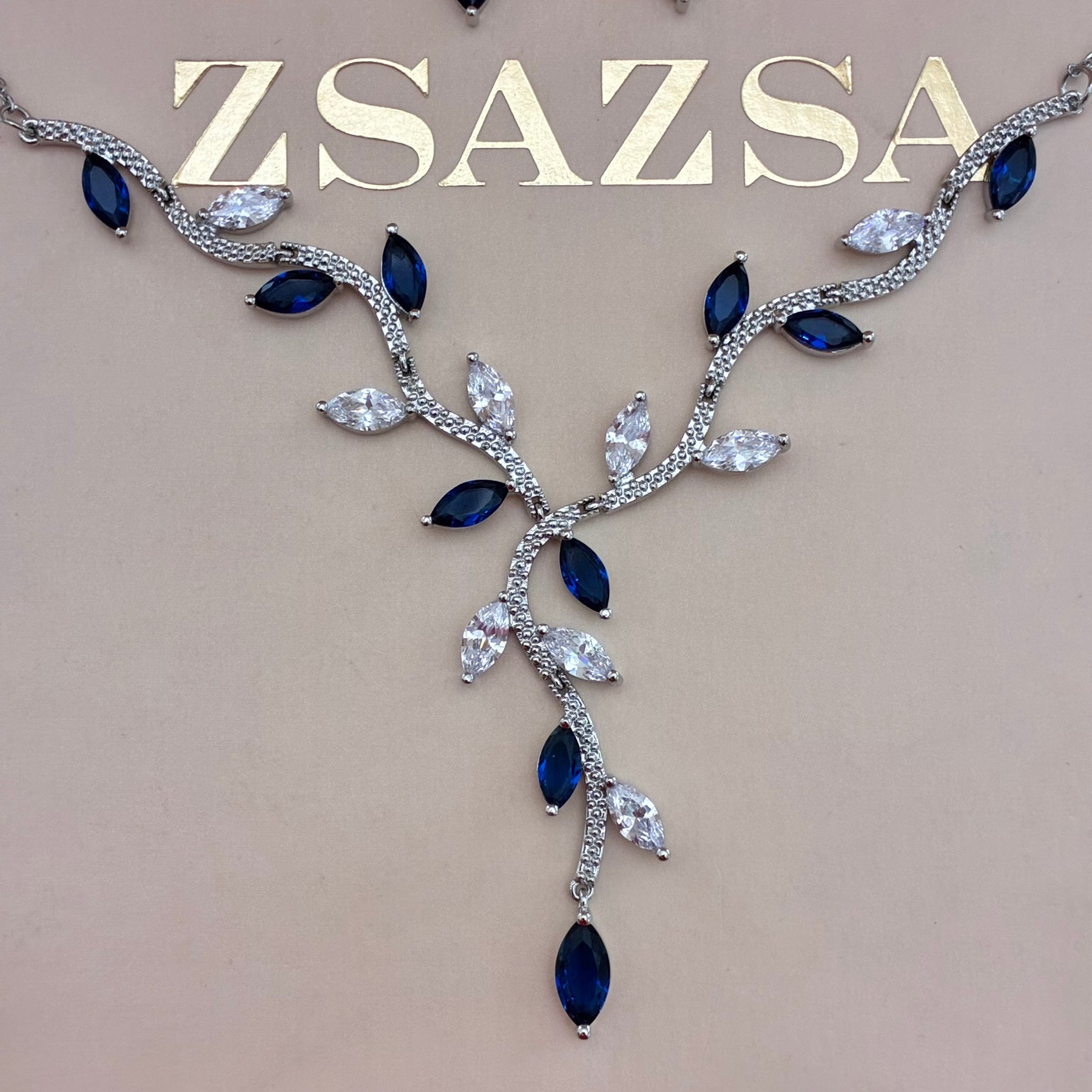 Introducing our Marquise navy blue zircone set - the perfect addition to any elegant occasion. With its stunning design, this set is ideal for weddings and can be worn by the mother of the bride or groom, or as a guest. Make a statement with our beautiful navy blue zircone set.