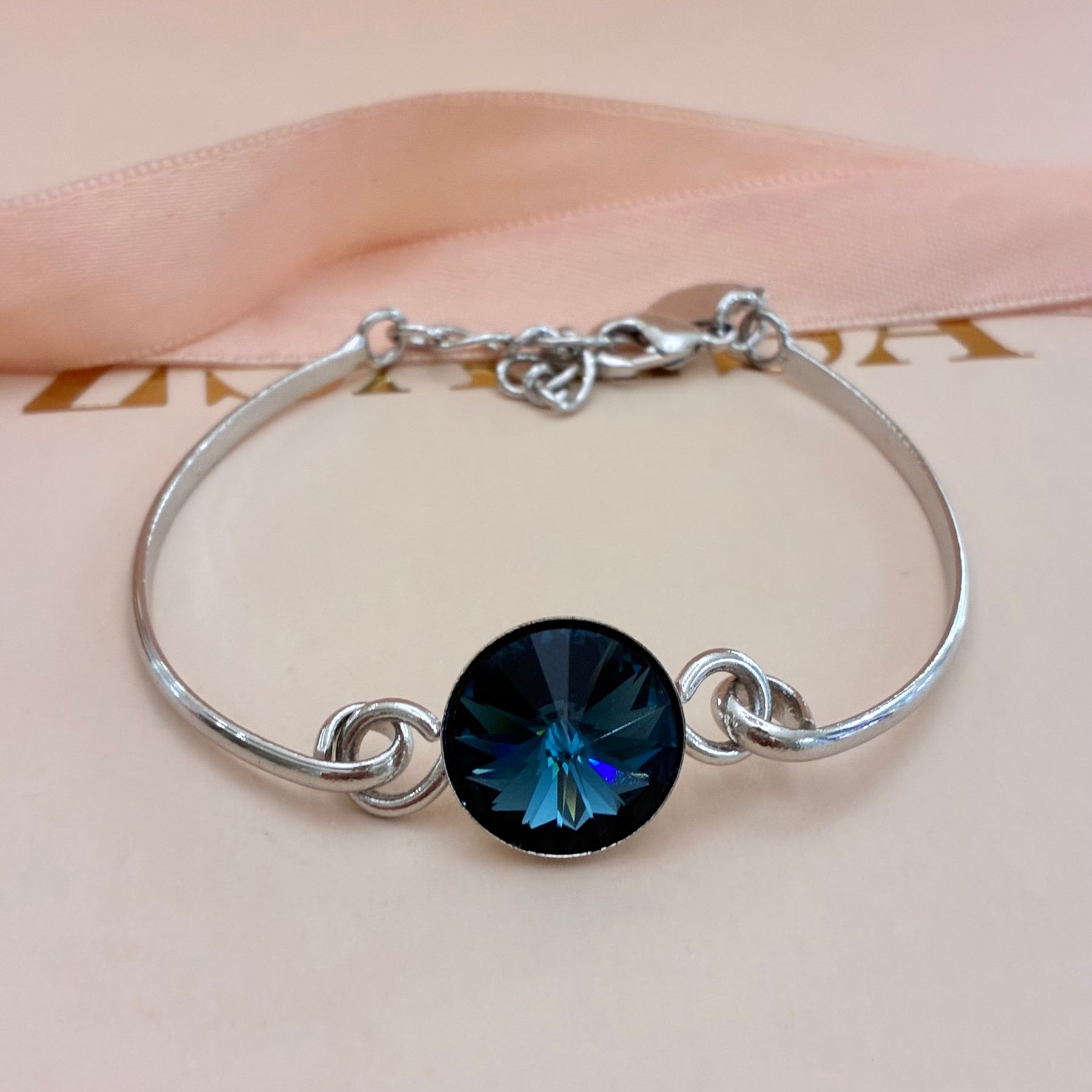 Add a touch of luxurious sparkle to any outfit with our Navy blue Swarovski Crystals Set. The round, navy blue crystals catch the light beautifully, adding a pop of color and elegance to your look. Featuring hooks, and bracelet, all plated with white gold, this set is the perfect accessory for any occasion.