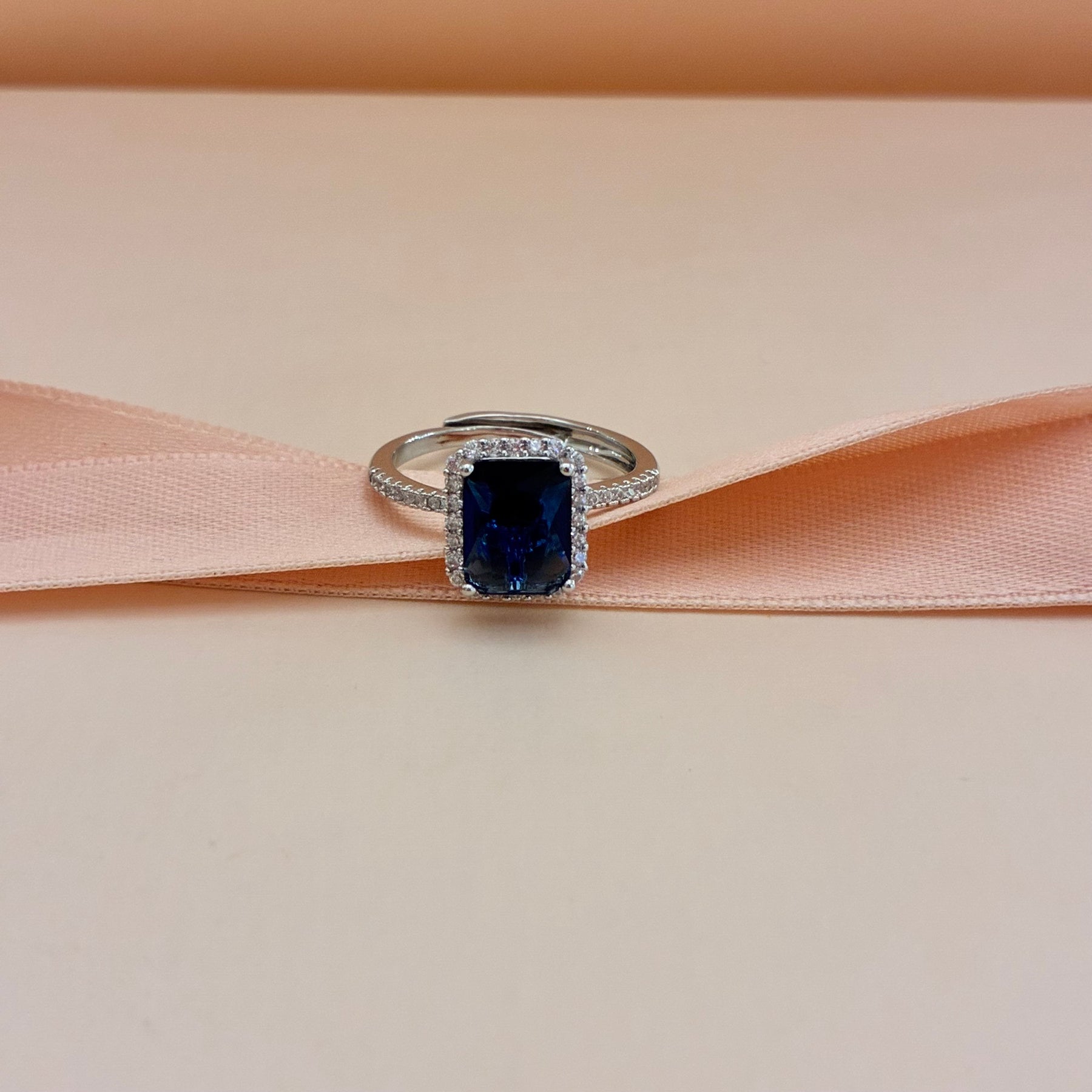 Elevate your style with our elegant Rectangular Classic Navy Blue Zircone Ring. Its timeless navy blue color complements the classic rectangular design, making it a versatile addition to any outfit. Plus, its adjustable fit ensures maximum comfort. Upgrade your jewelry collection today!