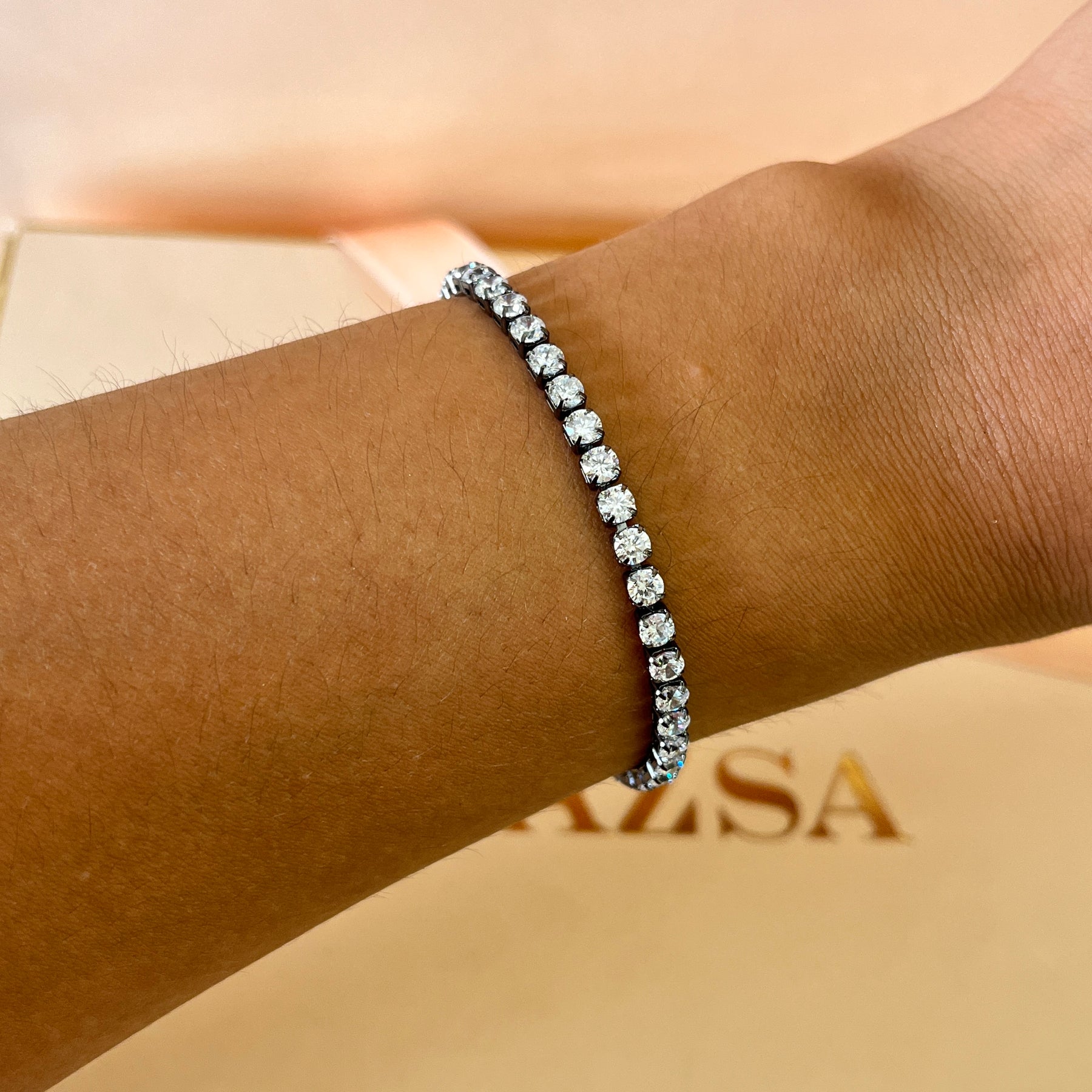 Discover the elegant and timeless beauty of our Zircone grey gold plater Bracelet. The clear stone zircone adds a touch of sparkle to the grey gold plating, creating a sophisticated and versatile piece. Its sleek tennis bracelet design is perfect for any occasion. Elevate your style with this exquisite piece.