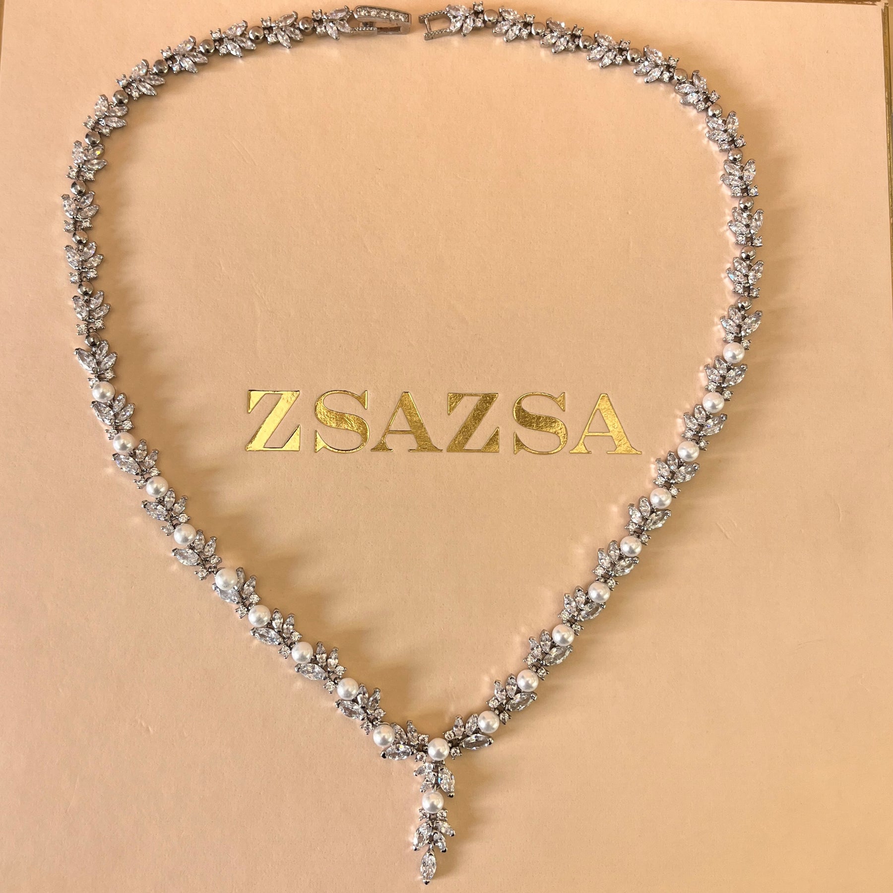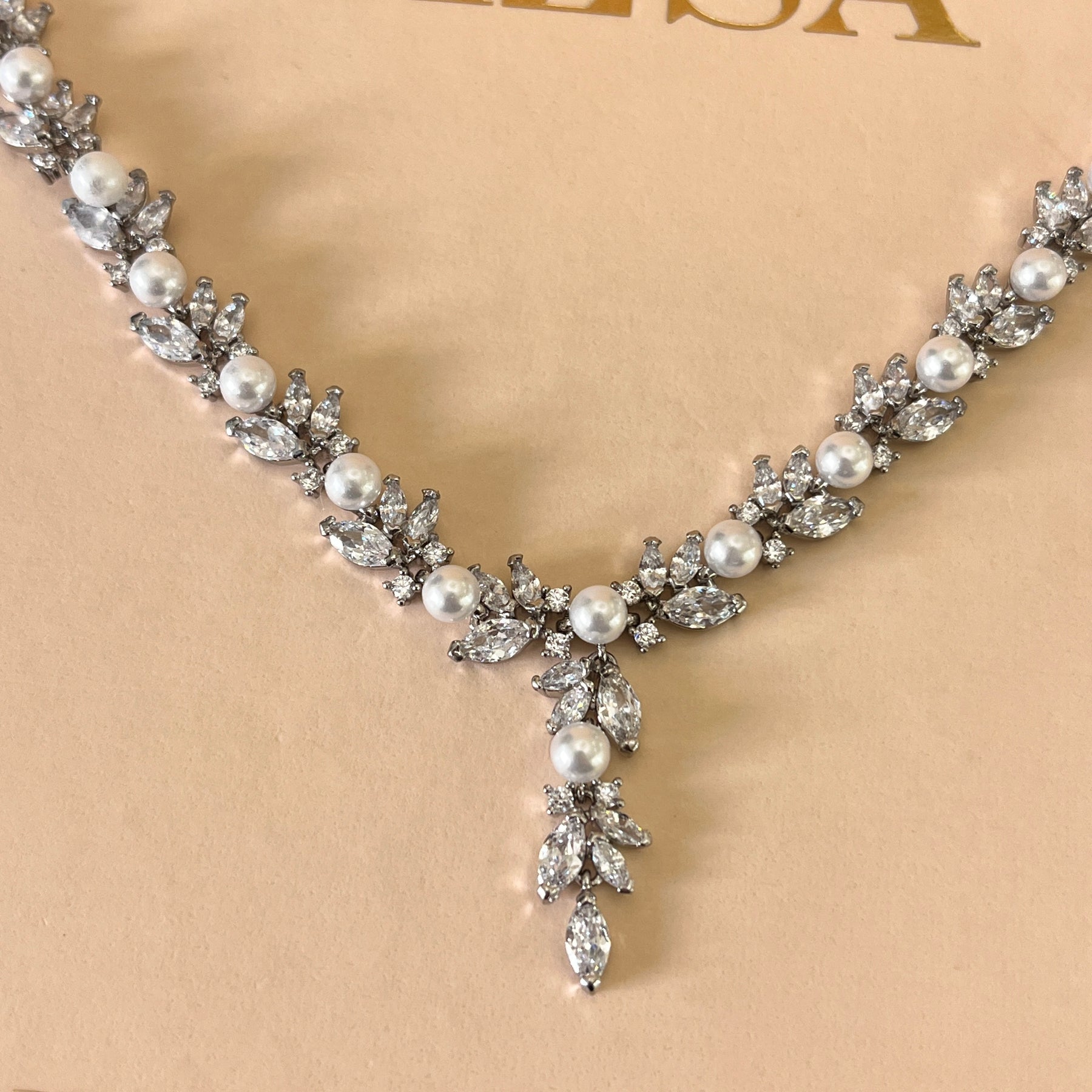 Marquise zircone and white pearls white gold plated set