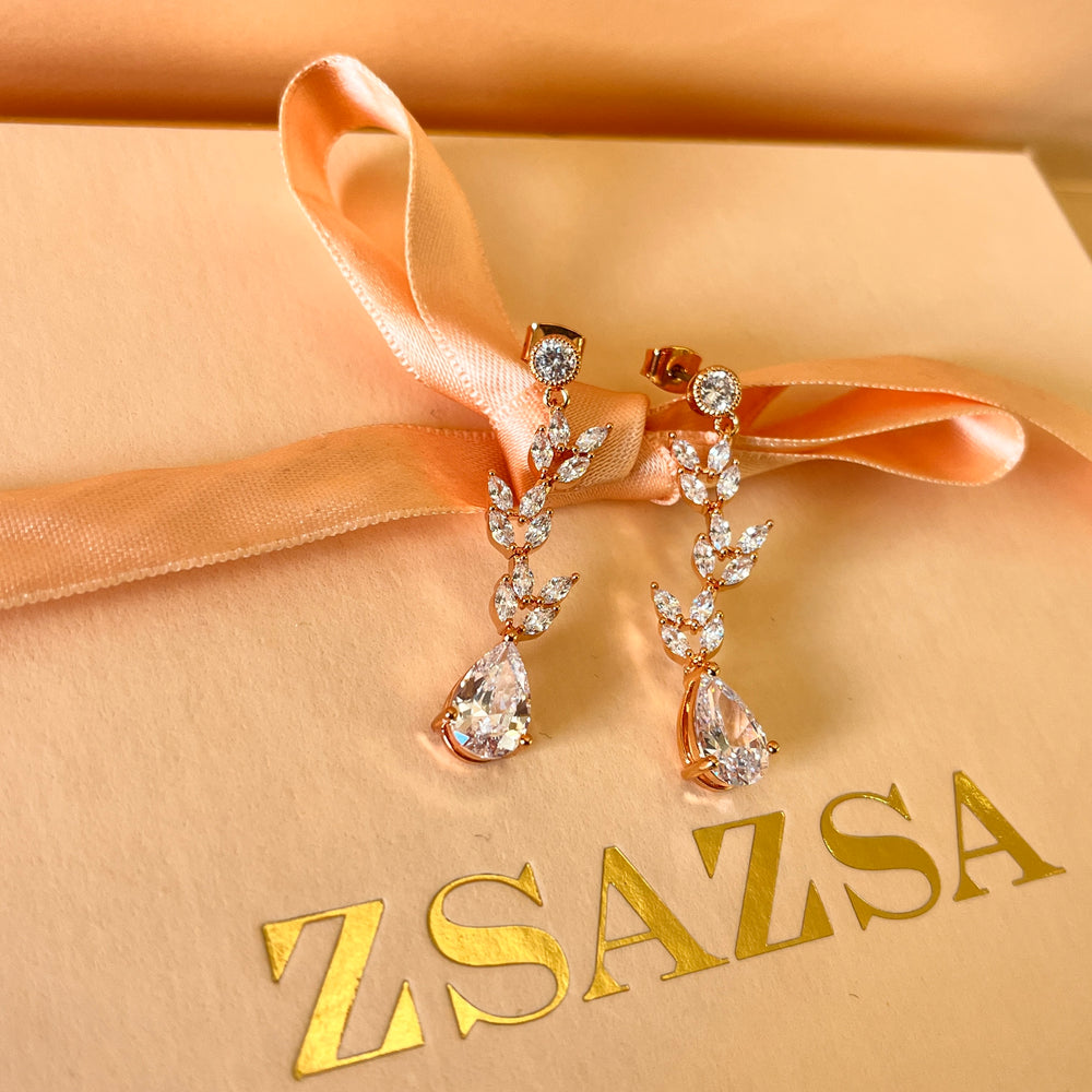 Teardrop zircone rose gold plated earrings