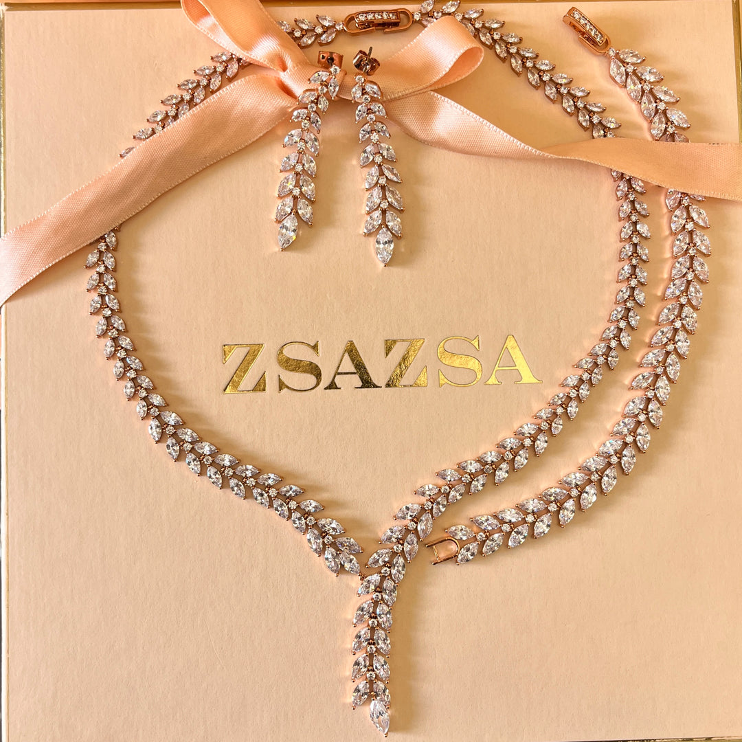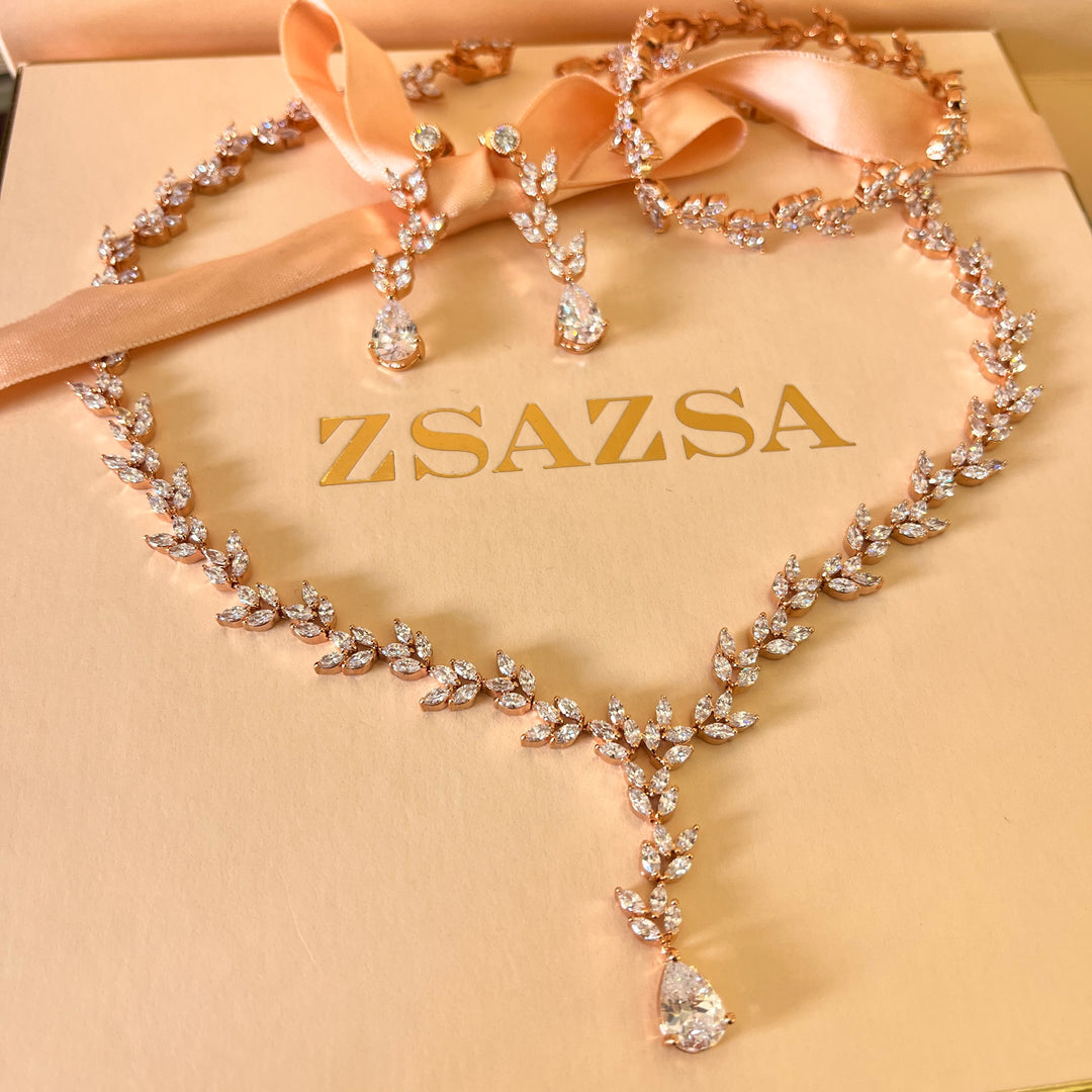 Marquise and teardrop zircone rose gold plated set
