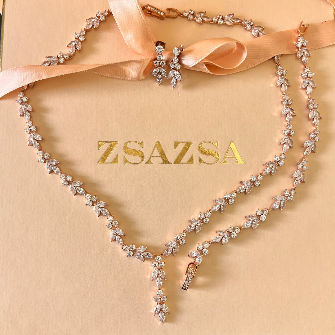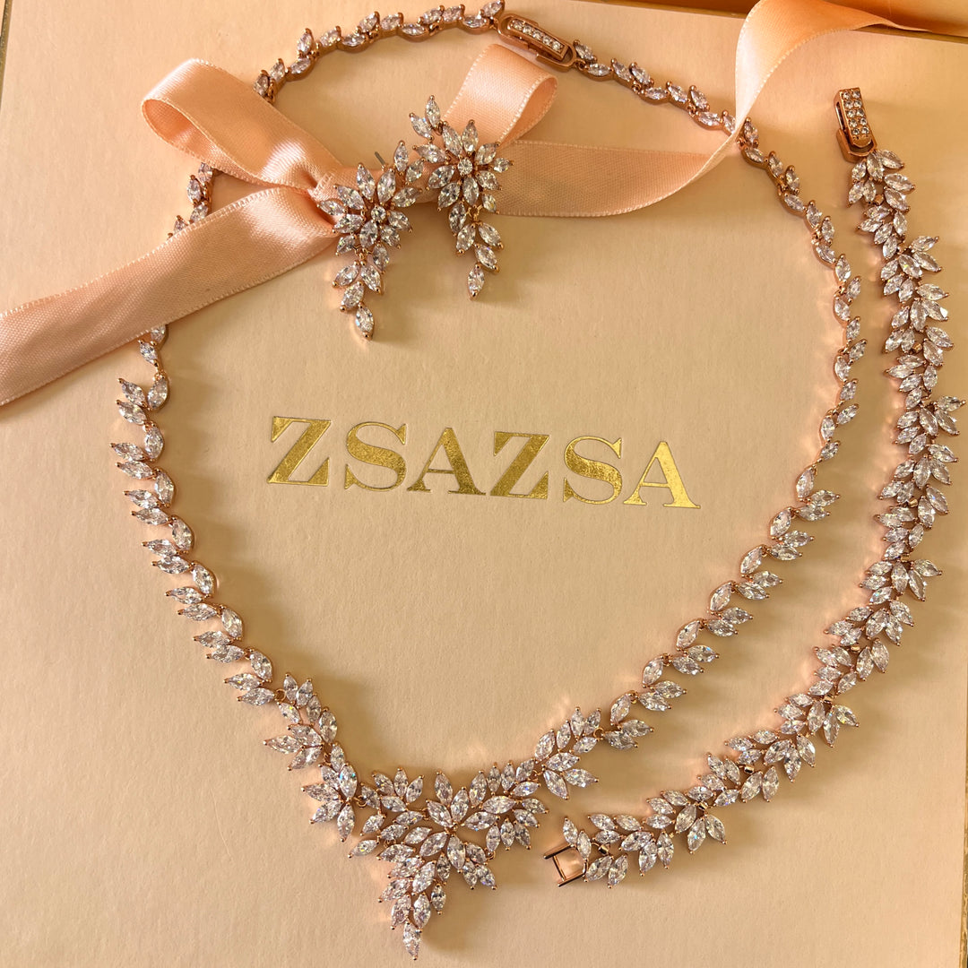 Marquise zircone rose gold plated necklace and bracelet