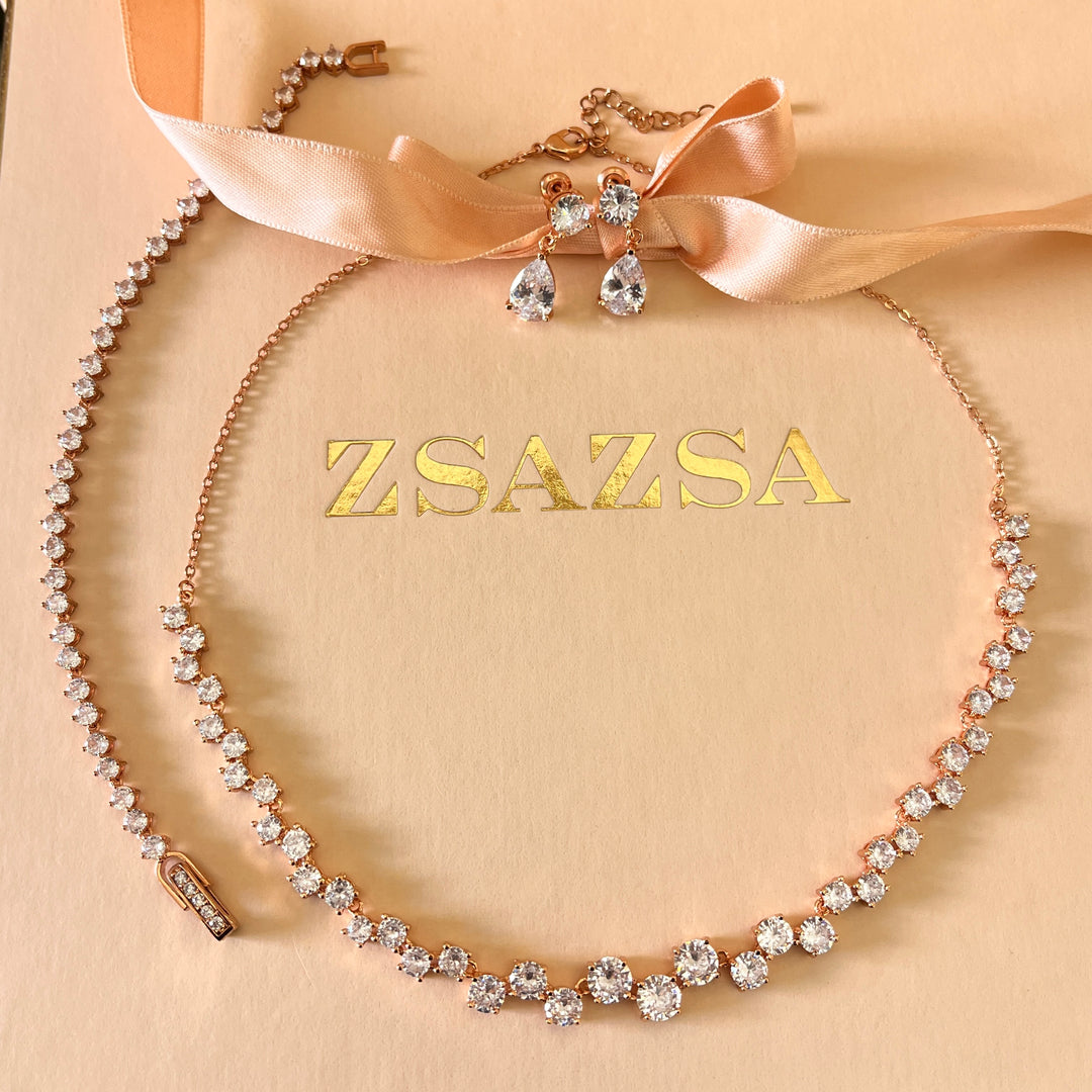 Round zircone rose gold plated set