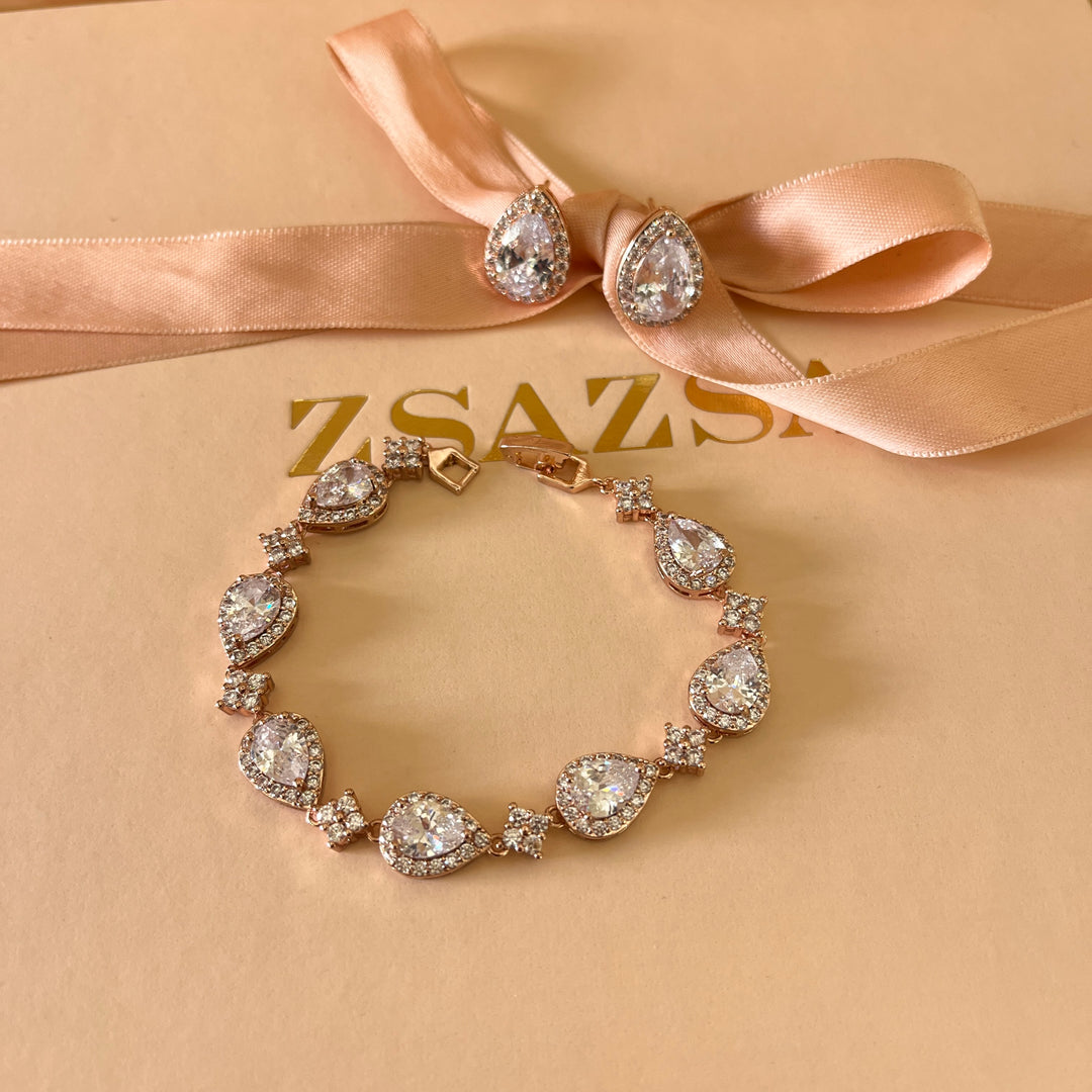 Teardrop zircone rose gold plated earrings and bracelet