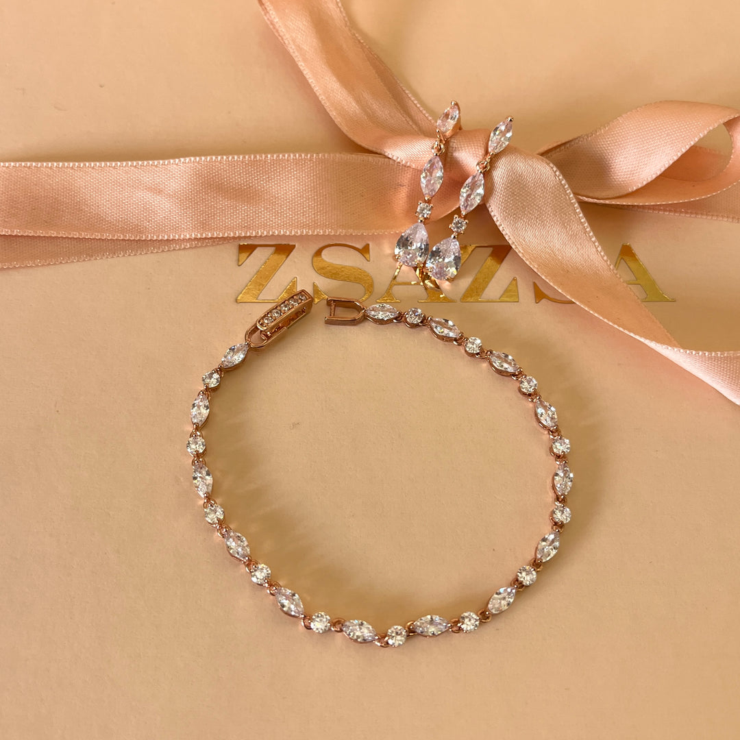 Marquise zircone rose gold plated earrings and bracelet