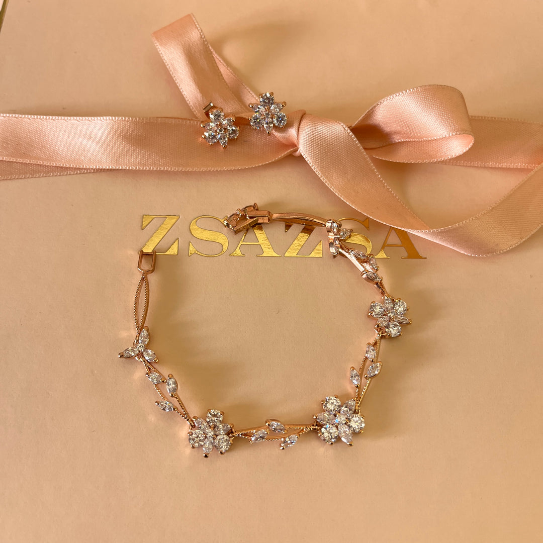 zircone rose gold plated flower bracelet