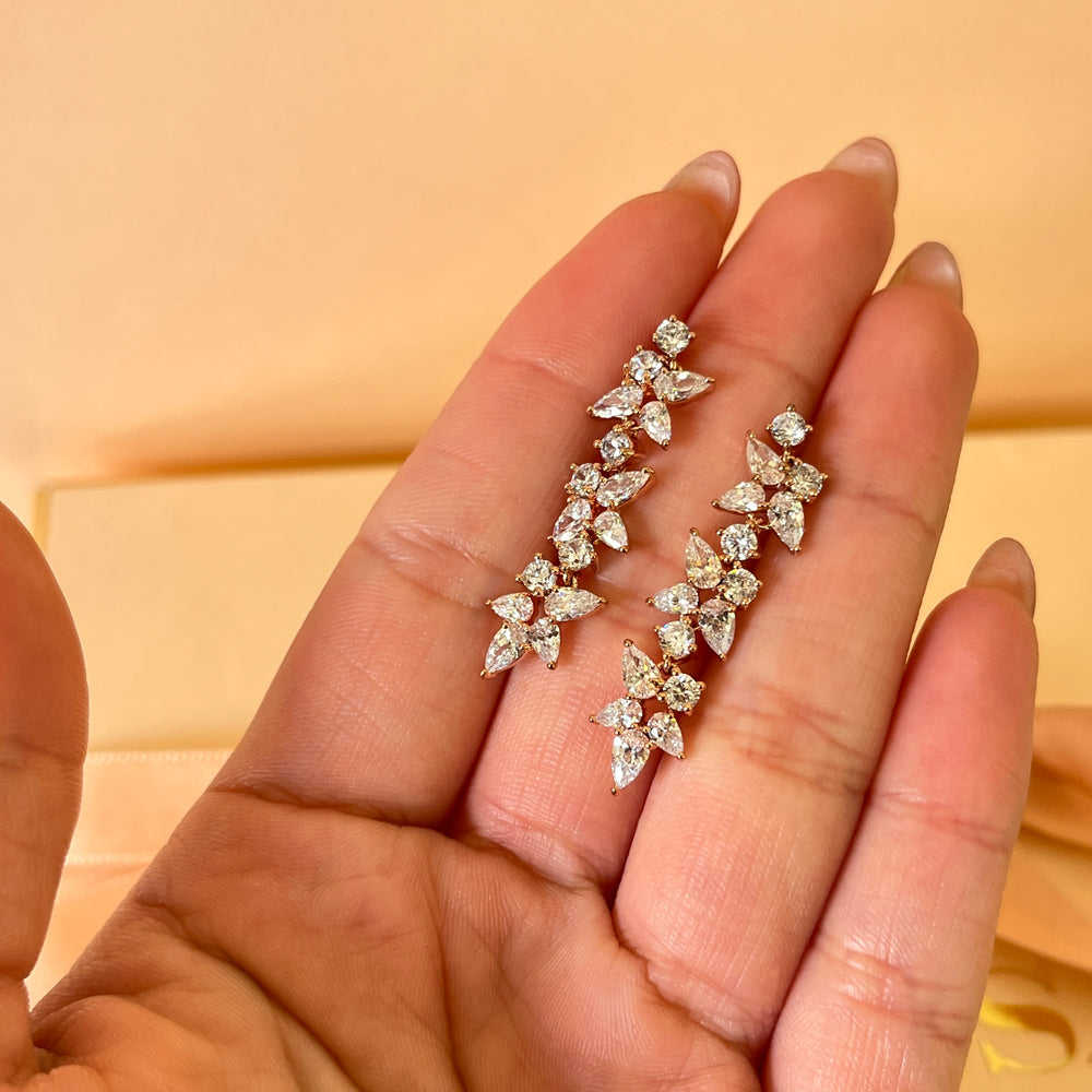 Flower and teardrop zircone gold plated earrings