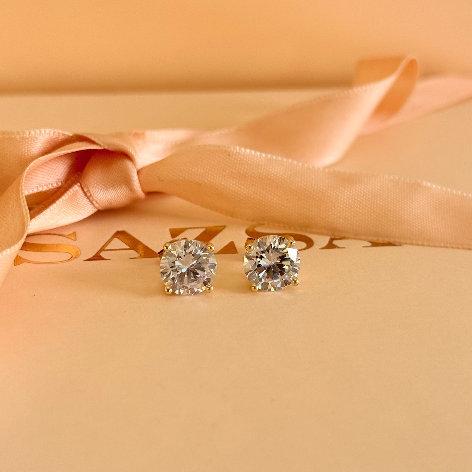 These stud earrings are crafted from a mix of sterling silver and gold plating, accented with sparkling zircone for the perfect accessory for any occasion, including bridesmaids' gifts.
