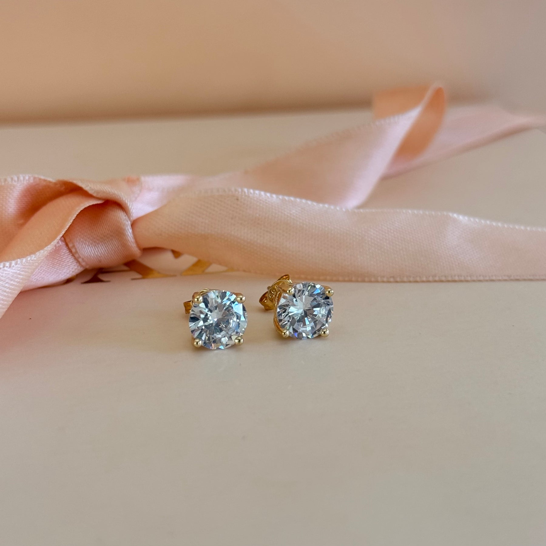 Medium size zircone solitaire gold plated earrings