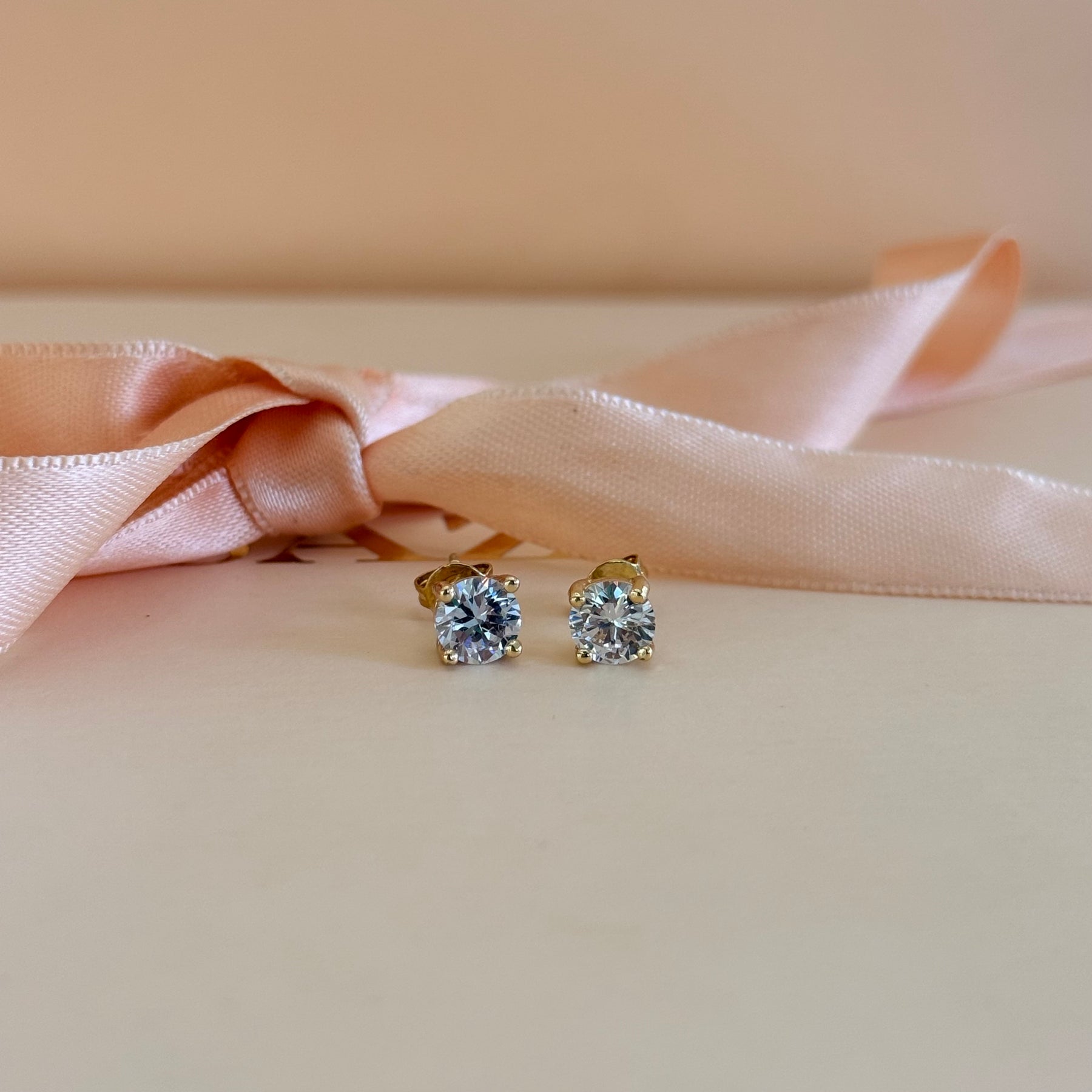Dress up any outfit with our Small Size Zirconia Solitaire Gold Plated Earrings. Made with sterling silver and gold plating, these simple yet elegant earrings are perfect for bridesmaids or any special occasion. Add a touch of sophistication to your look with these beautiful earrings.