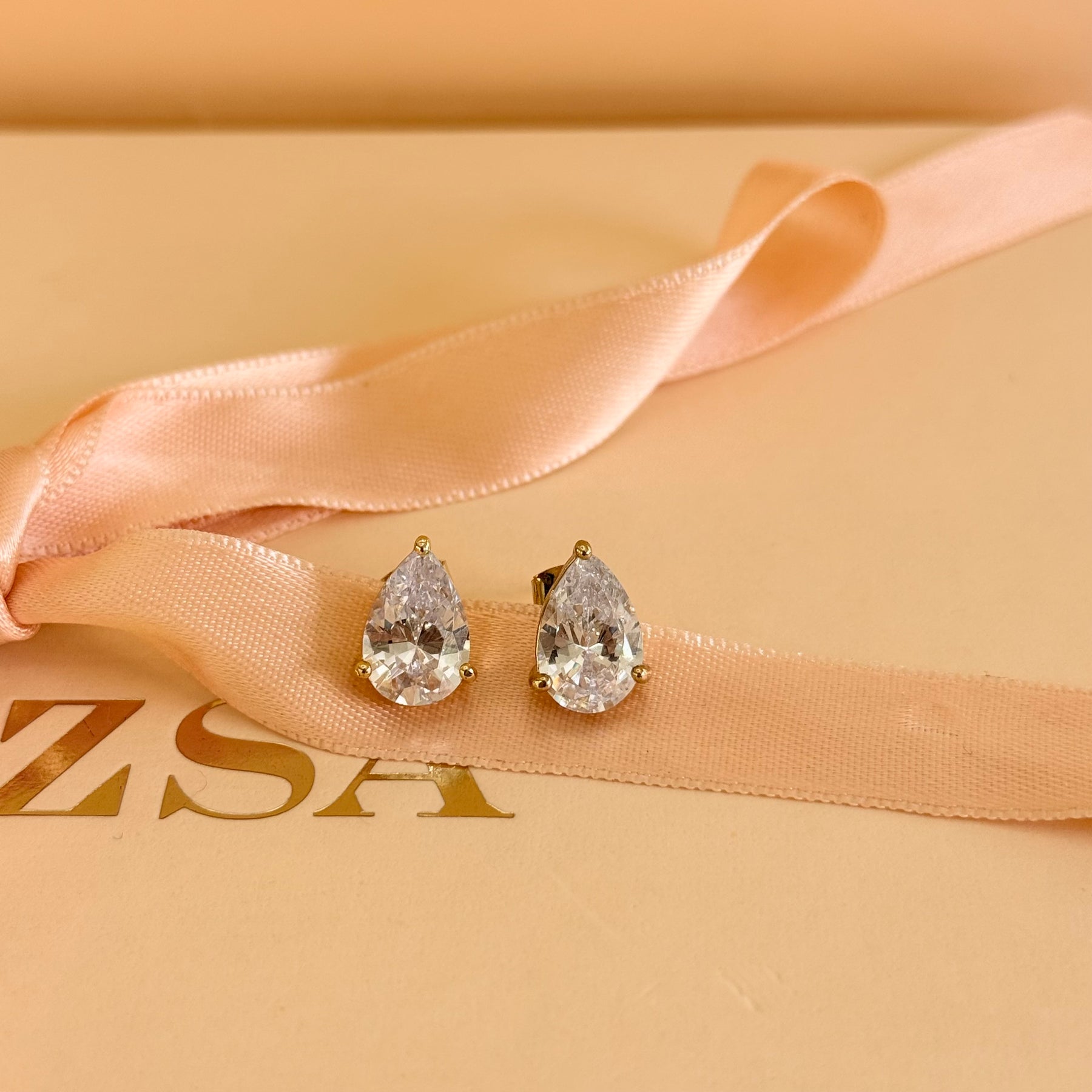 Add a touch of elegance to any outfit with our Teardrop Zircone Gold Plated Studs! In medium size. These simple yet stunning earrings are perfect for bridesmaids or any special occasion. The teardrop shape and sparkling zircone will add a touch of glamour to any look. Elevate your style today!