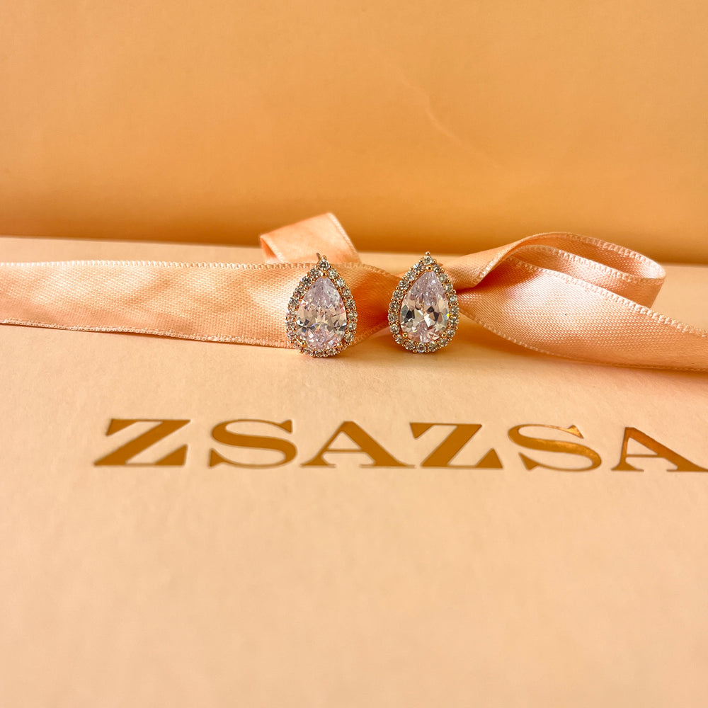 Teardrop zircone rose gold plated earrings
