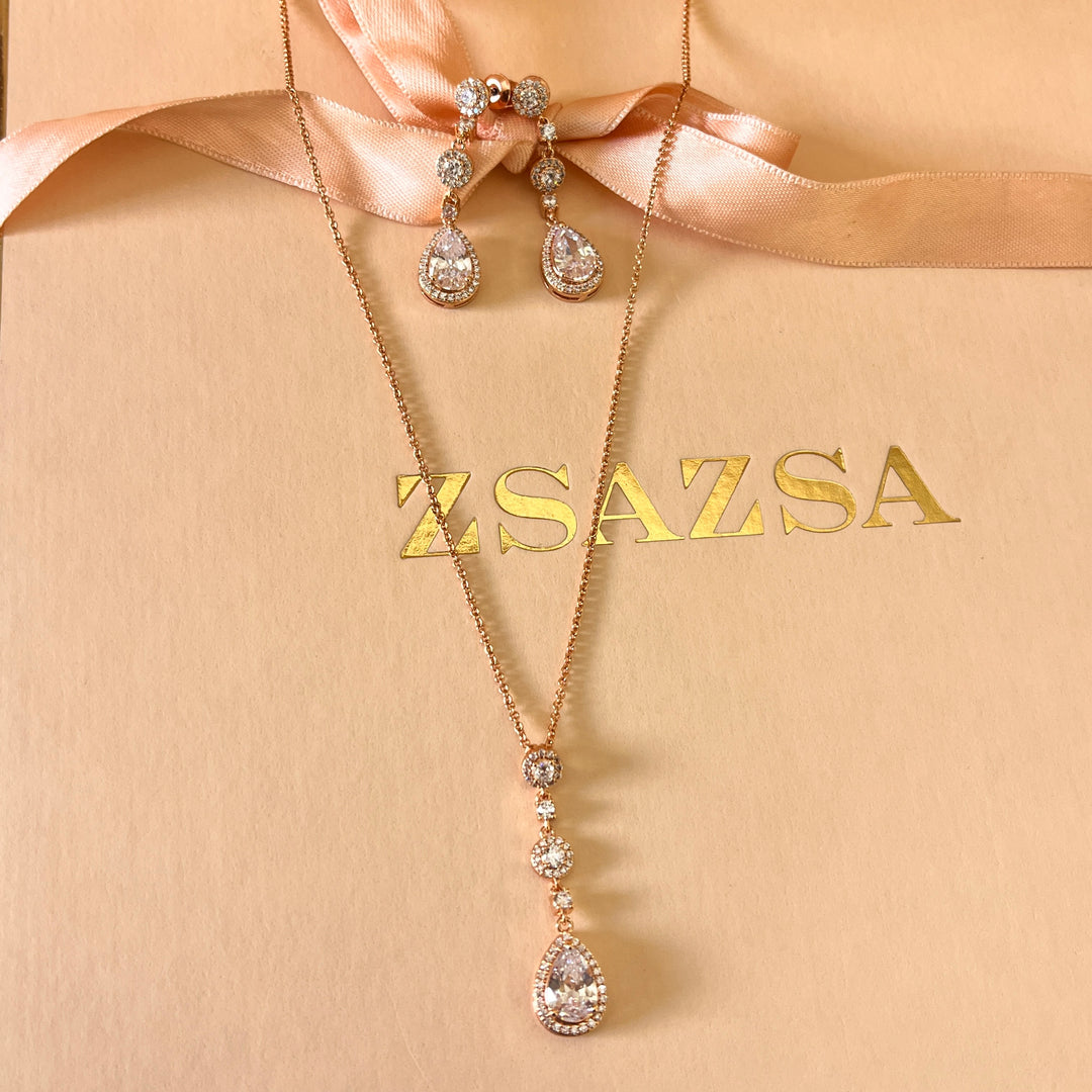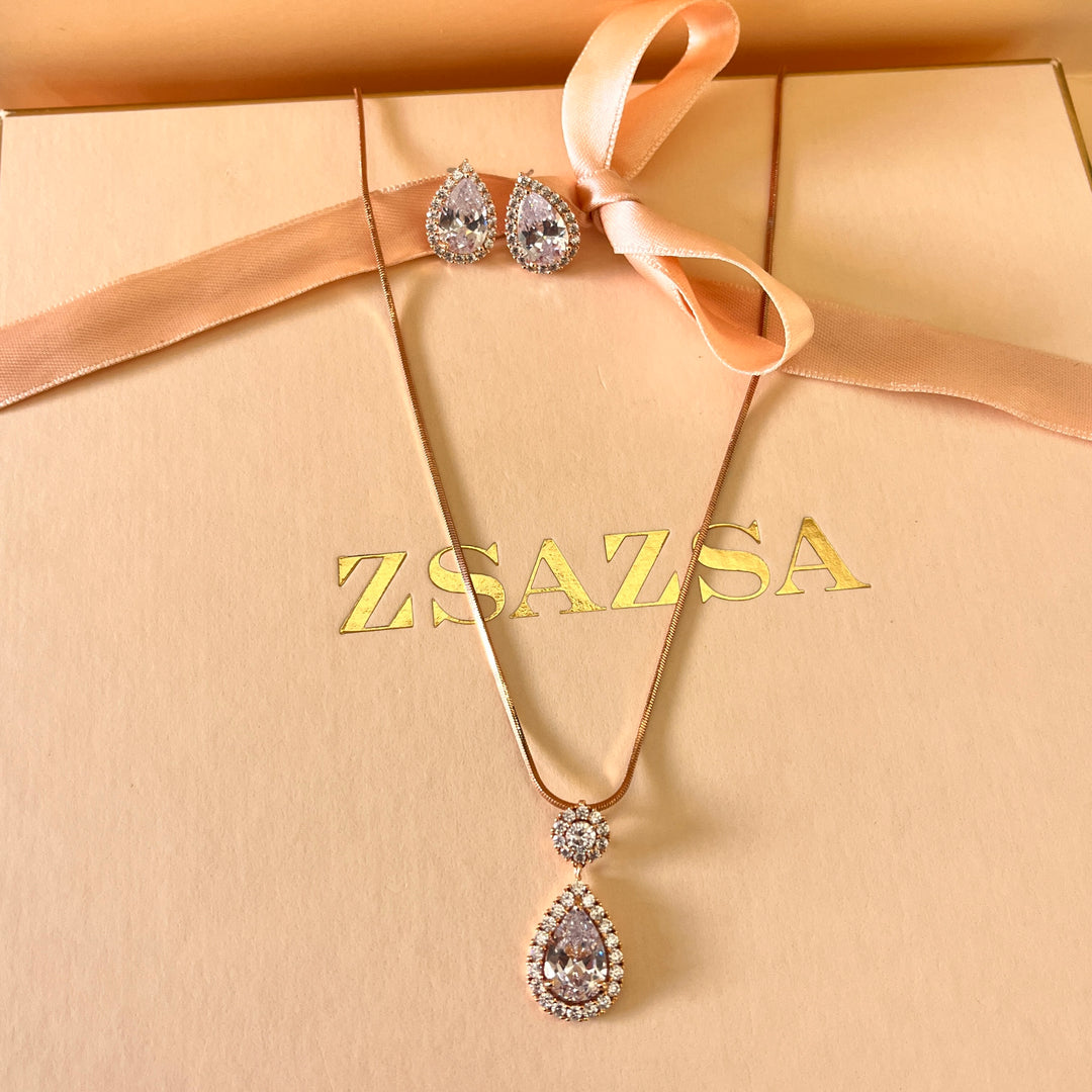 Teardrop zircone rose gold plated set