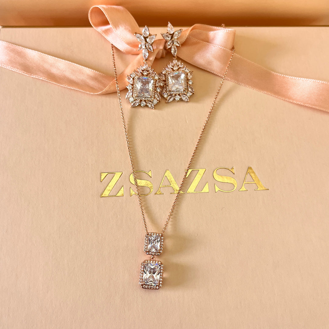 Rectangular and marquise zircone rose gold plated set
