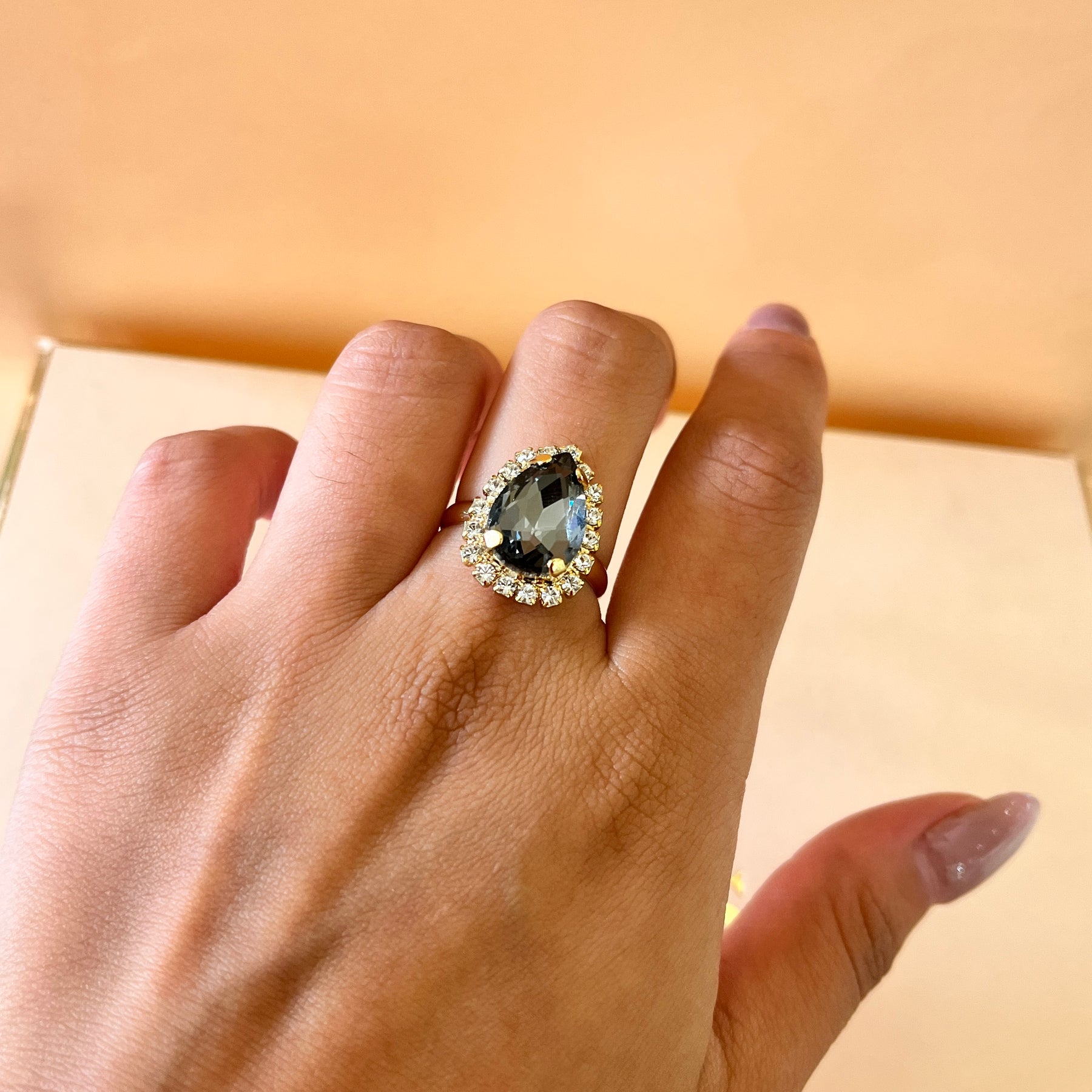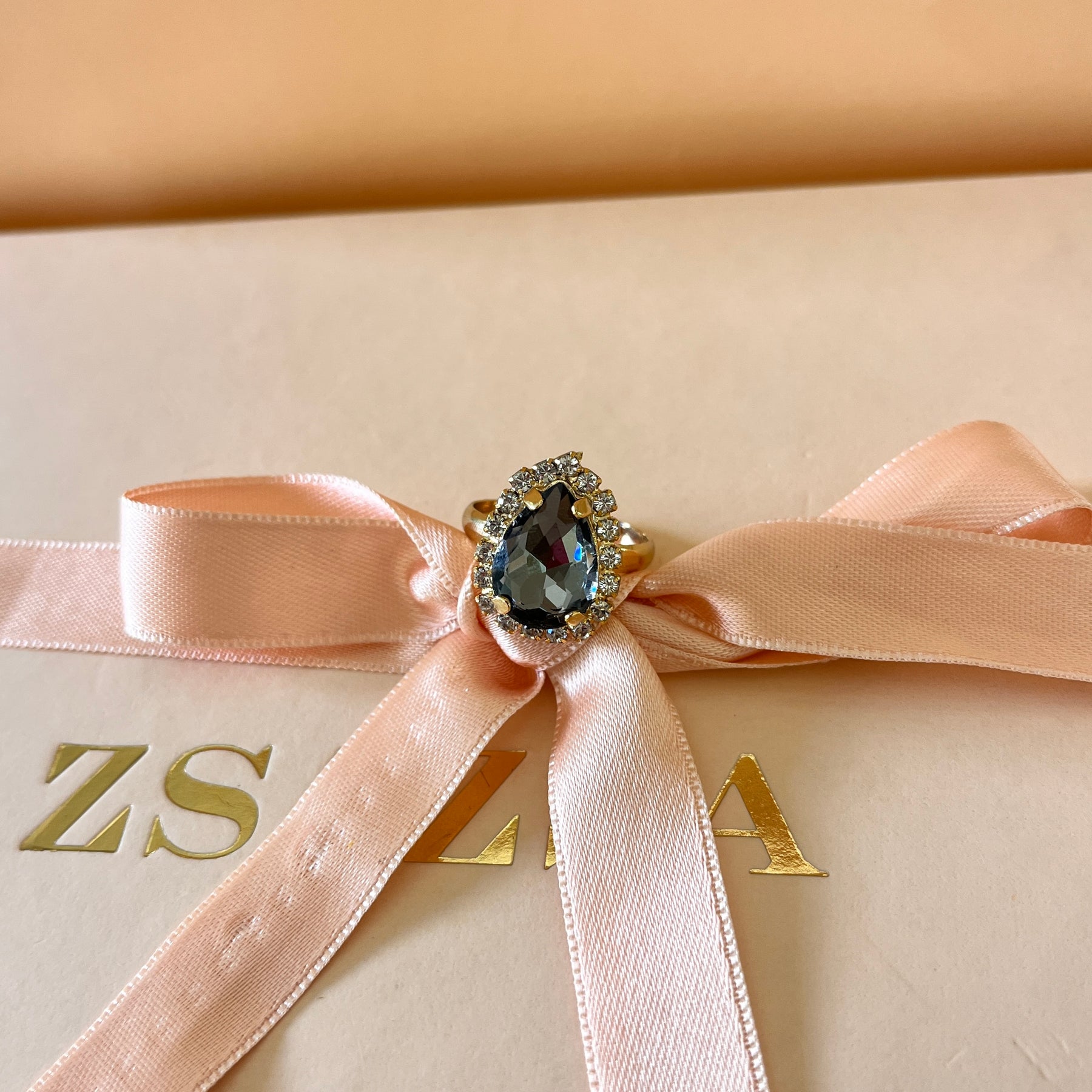 Upgrade your wardrobe with our stunning grey teardrop preciosa crystals set! Adorned with vibrant grey crystals in a unique teardrop shape, this set includes dazzling studs, a pendant, and a ring, all beautifully gold plated. Elevate any outfit with the luxurious sparkle of preciosa crystals.