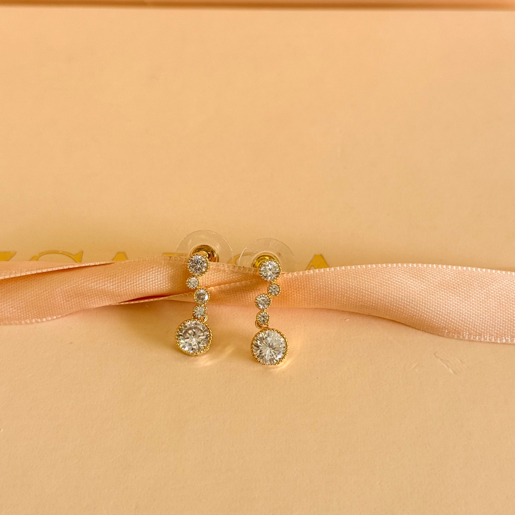 Elevate your look with our Dainty Rounds Zircon Gold Plated Earrings. Sparkling round zircons are delicately set in a stunning gold plated design, making these earrings the perfect choice for any occasion. Whether it's a special gift or a casual outing, these earrings are sure to impress.