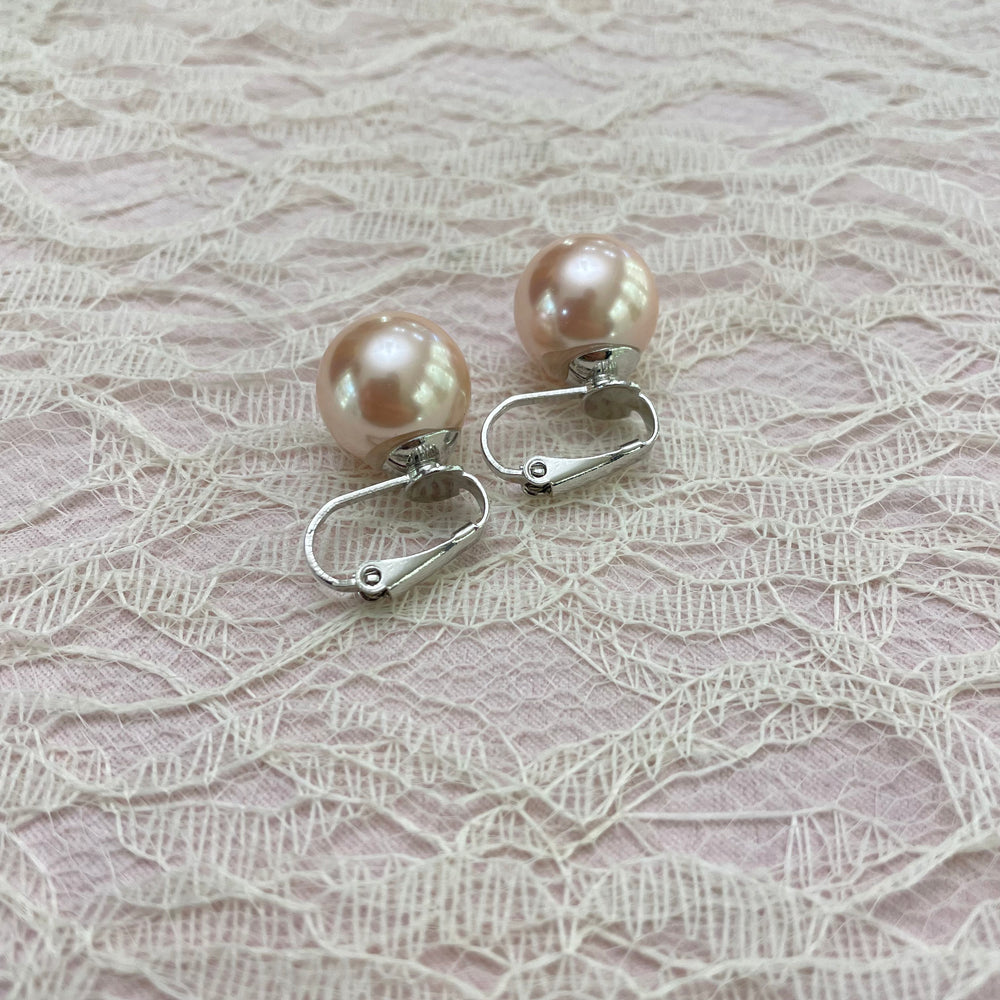 Pink pearl basic clips earrings