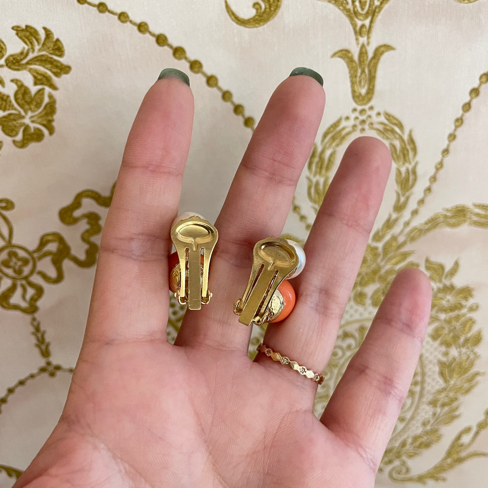 Coral & pearl clips earrings large