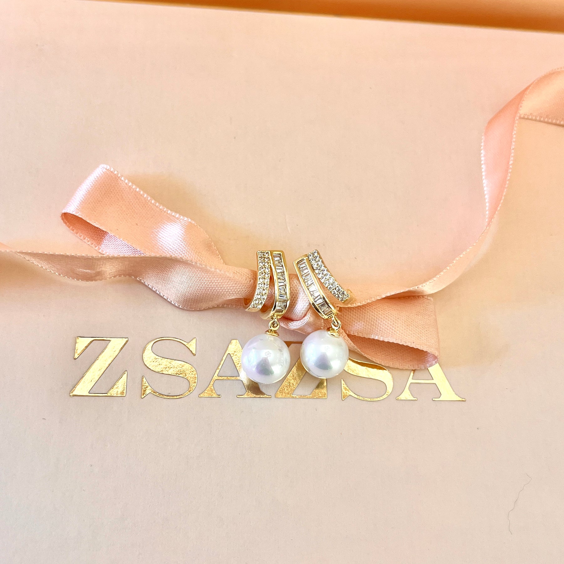 Crafted with baguette-shaped zircone and white round simulated pearls, these gold-plated earrings offer an elegant aesthetic. The combination of materials ensures durability and a refined appearance, suitable for various occasions. The gold plating provides a tarnish-resistant finish, maintaining the earrings' shine over time.