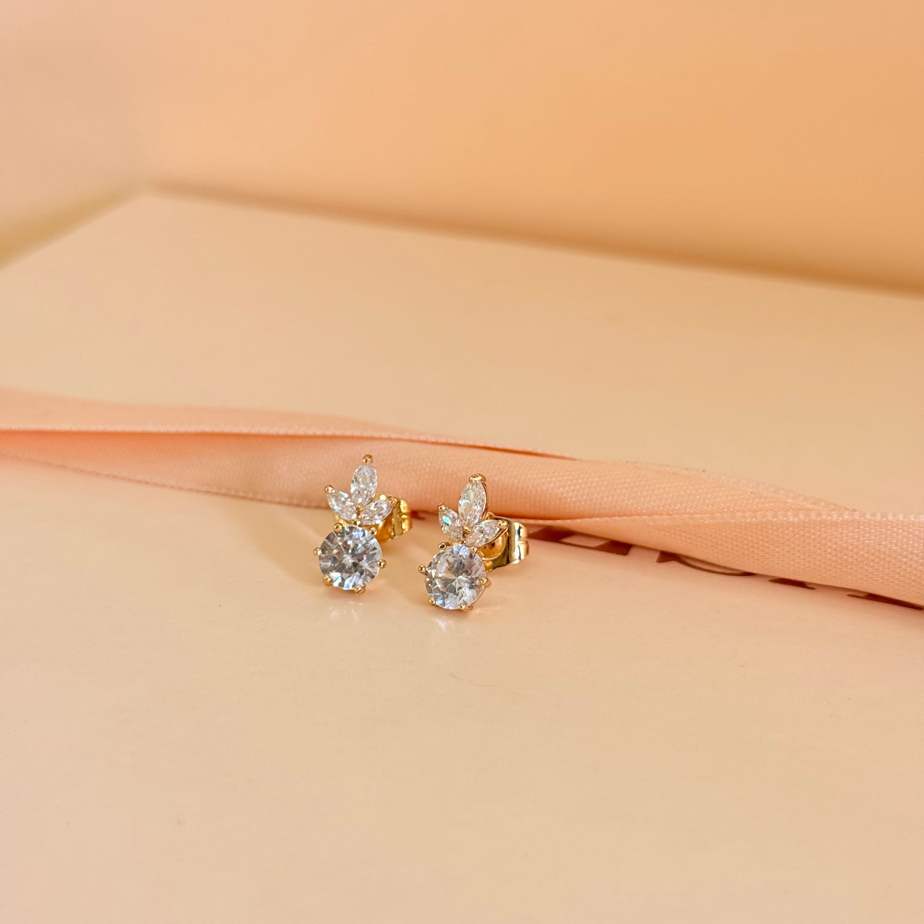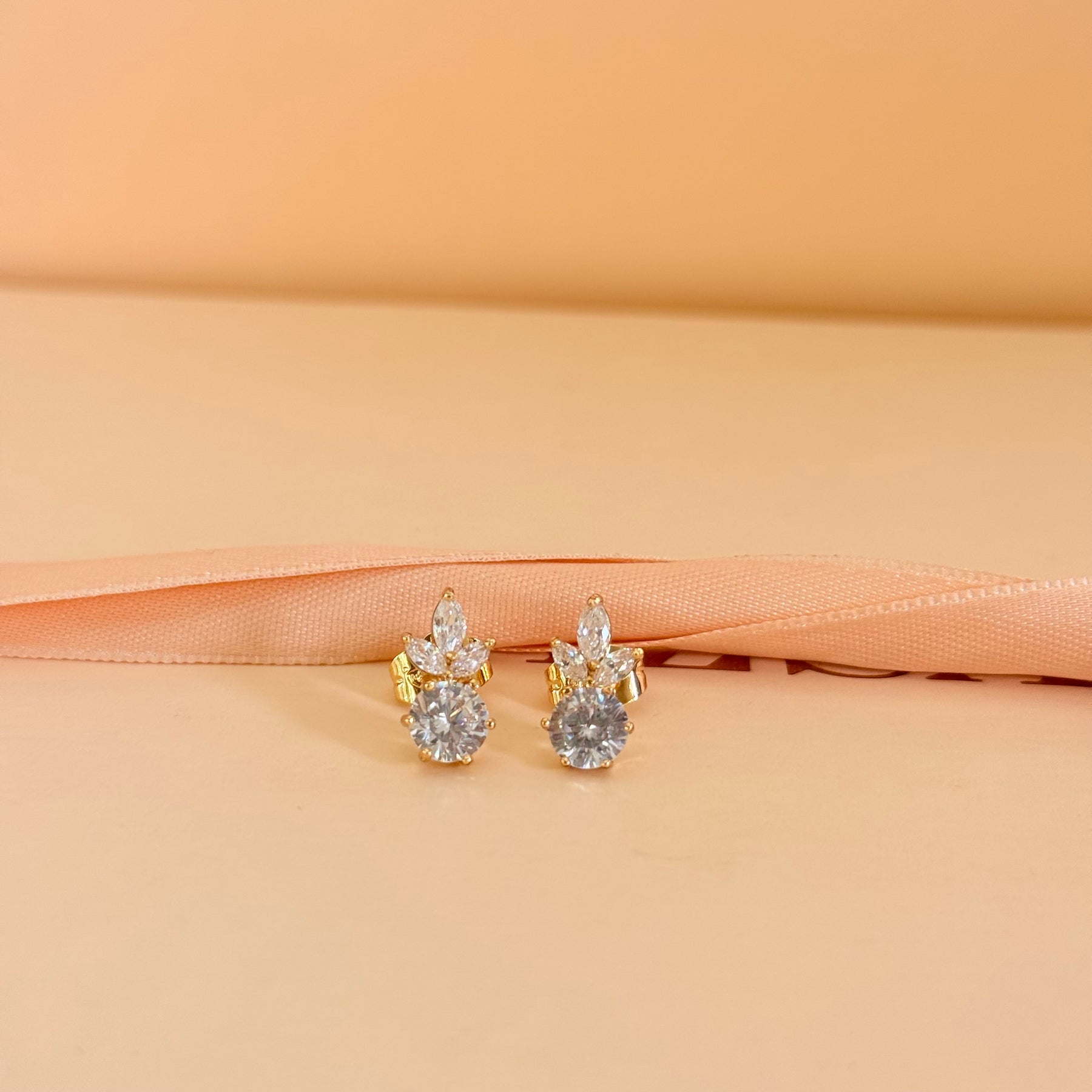Indulge in sparkling elegance with our Marquise and Round Zircone Gold Plated Studs. These dainty studs feature a stunning combination of marquise and round zircone stones, exuding luxury and sophistication. Perfect for any occasion, they make the perfect gift for someone special. Elevate your look with these dazzling studs today!
