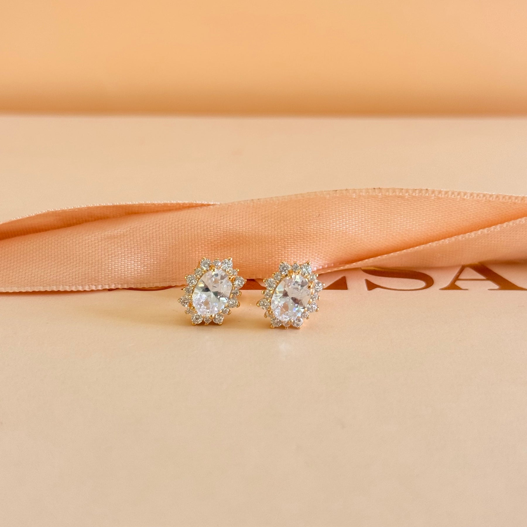 These oval zircone gold plated studs are perfect for any special occasion or event, adding an elegant touch to any outfit. Made with sterling silver and gold plating, they are high quality and stylish.