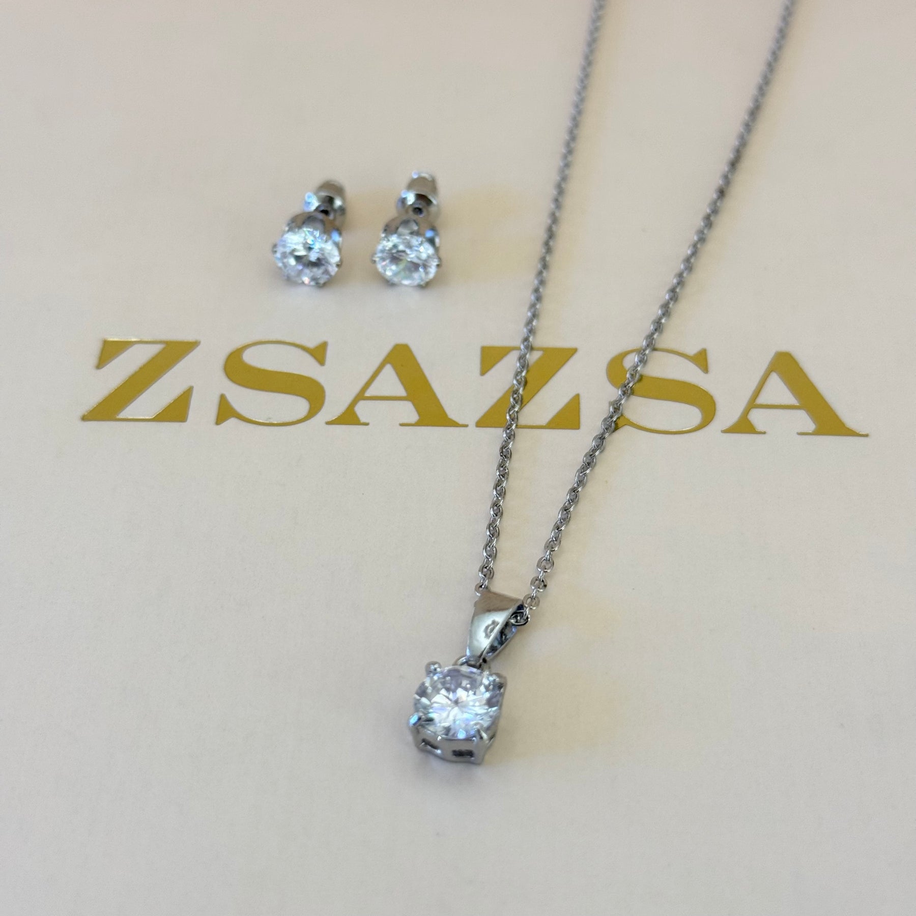 The Solitaire Zircone Silver Set features a classic design with a solitaire zircone, elegantly plated in white gold. This combination offers a sophisticated accessory suitable for various occasions, providing durability and a timeless aesthetic that enhances the wearer's style without overwhelming it.