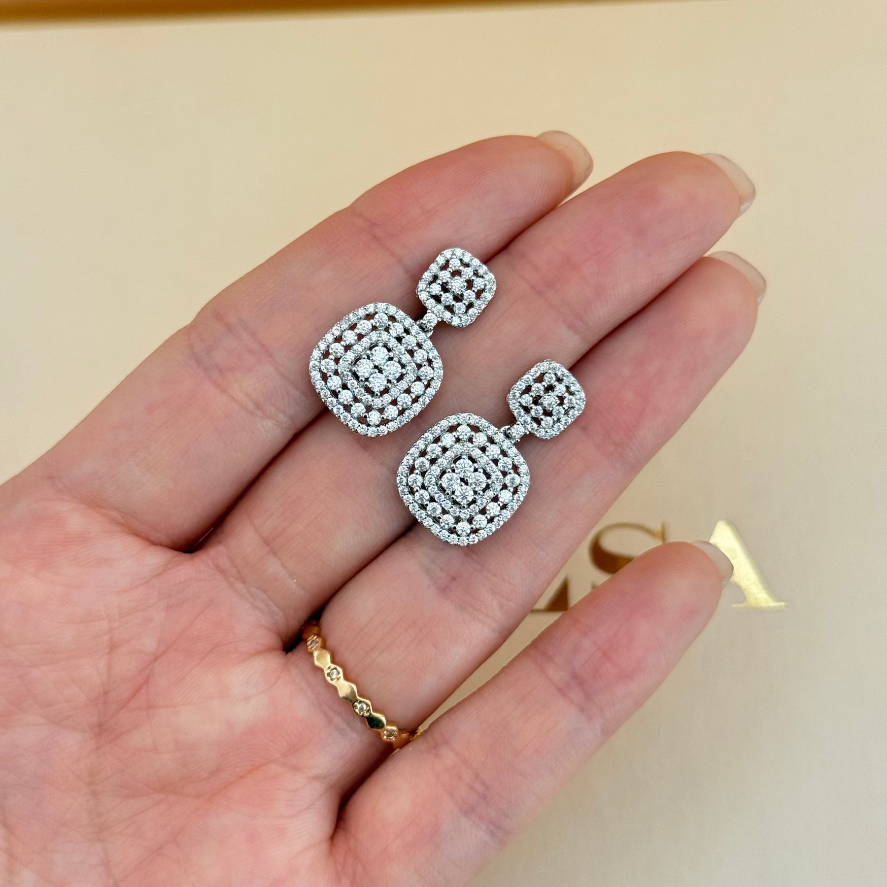The Squares Zircone White gold plated Set features a classic and elegant design characterized by its square shapes. Crafted with high-quality zircone, this set offers a sophisticated aesthetic, making it suitable for formal occasions. The reflective properties of zircone enhance its visual appeal, providing a luxurious look that complements various styles.Β