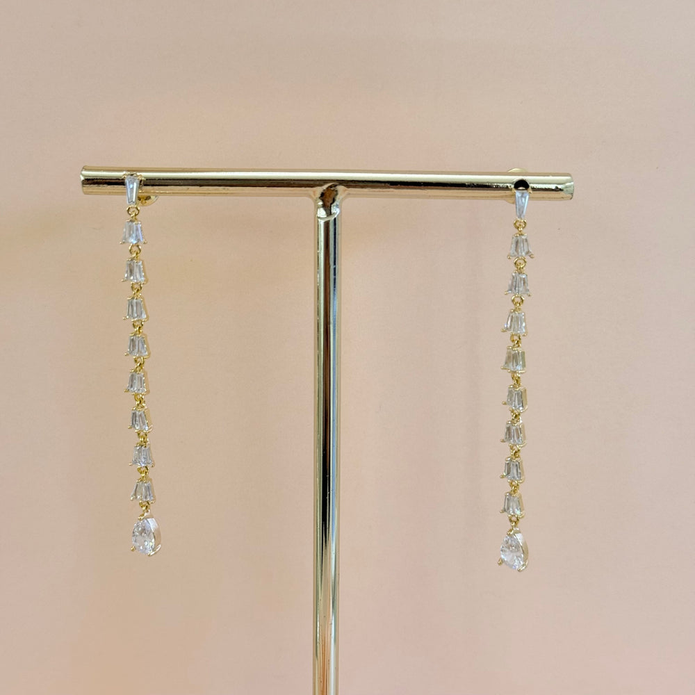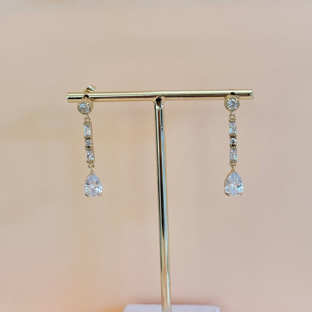 Baguette and teardrop zircone gold plated earrings