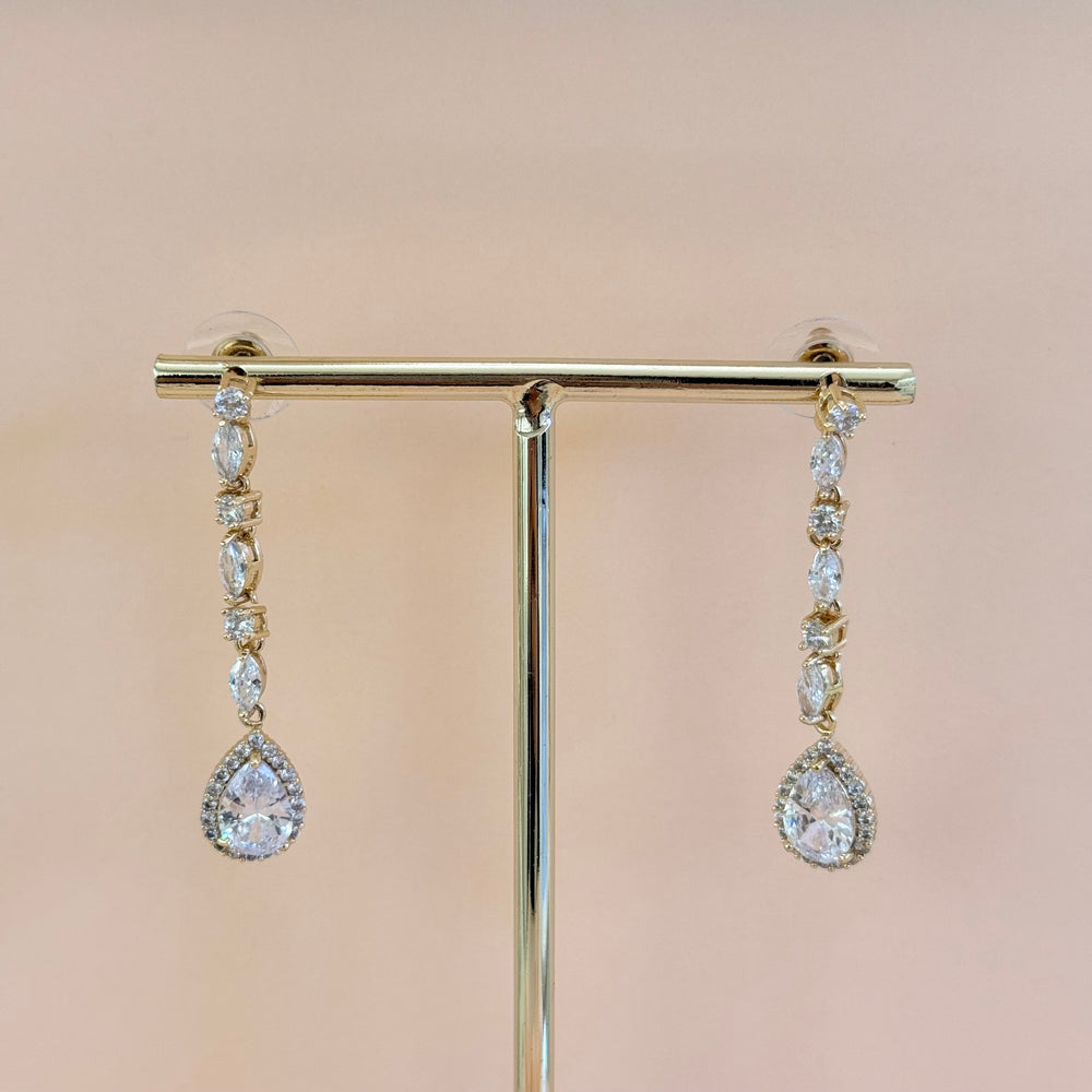 Dainty marquise and teardrop long zircone earrings