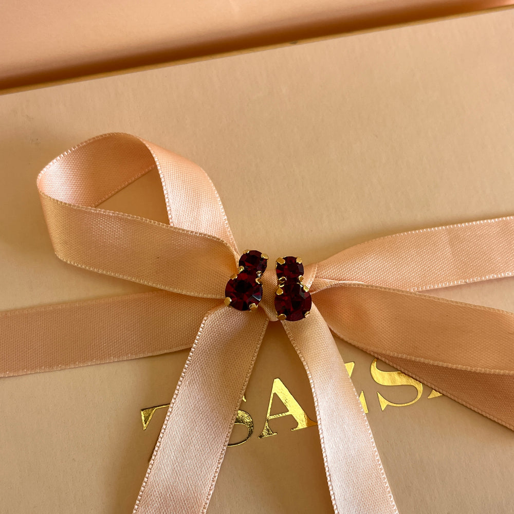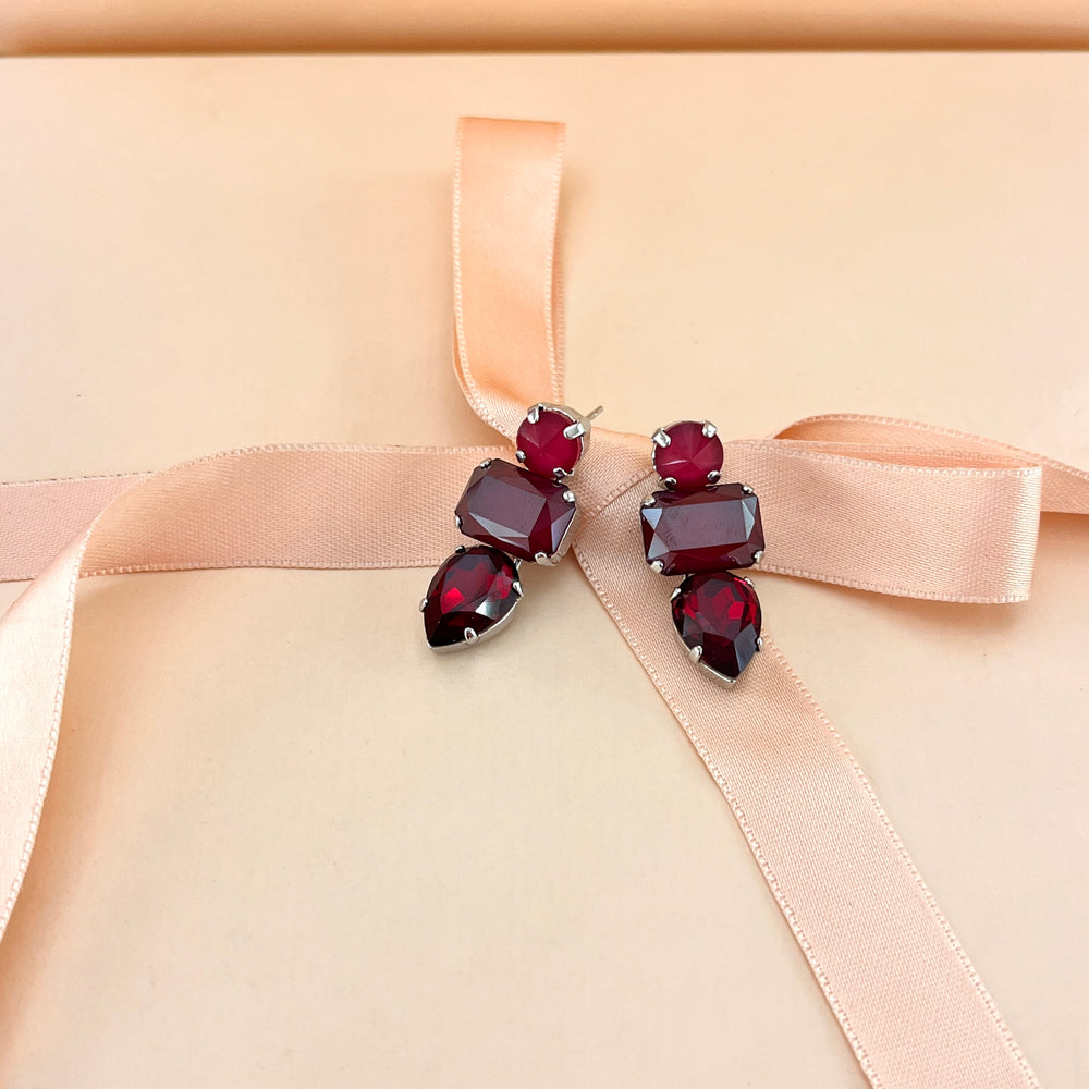 Marquise and teardrop dark red Swarovski crystals gold plated set