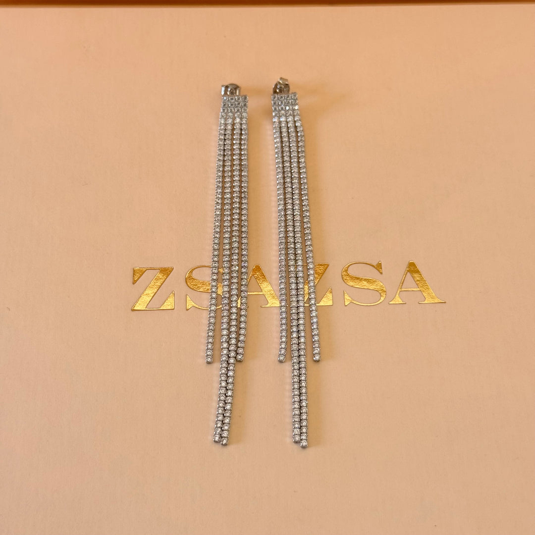 4 fringe zircone silver earrings