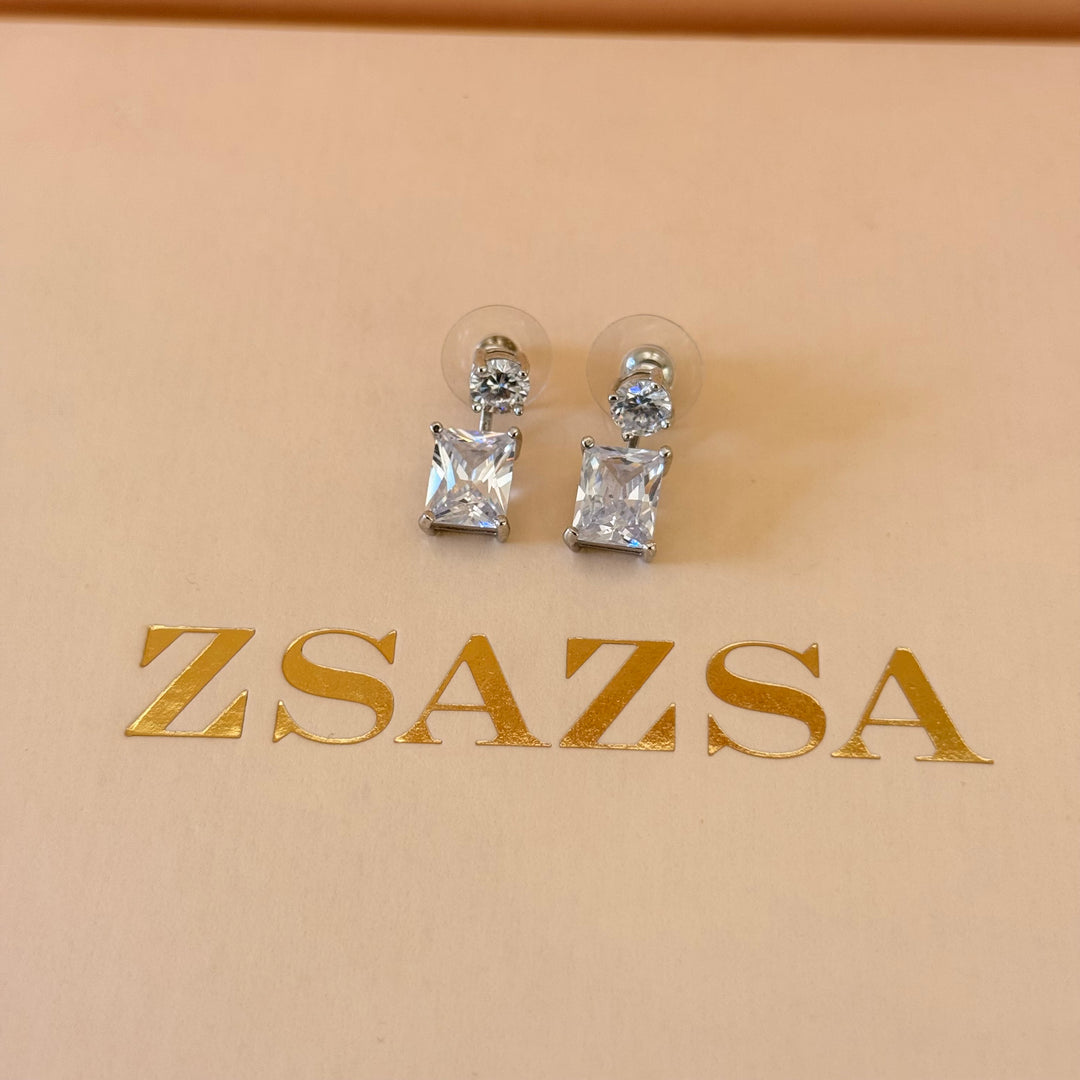 2 in 1 zircone silver earrings