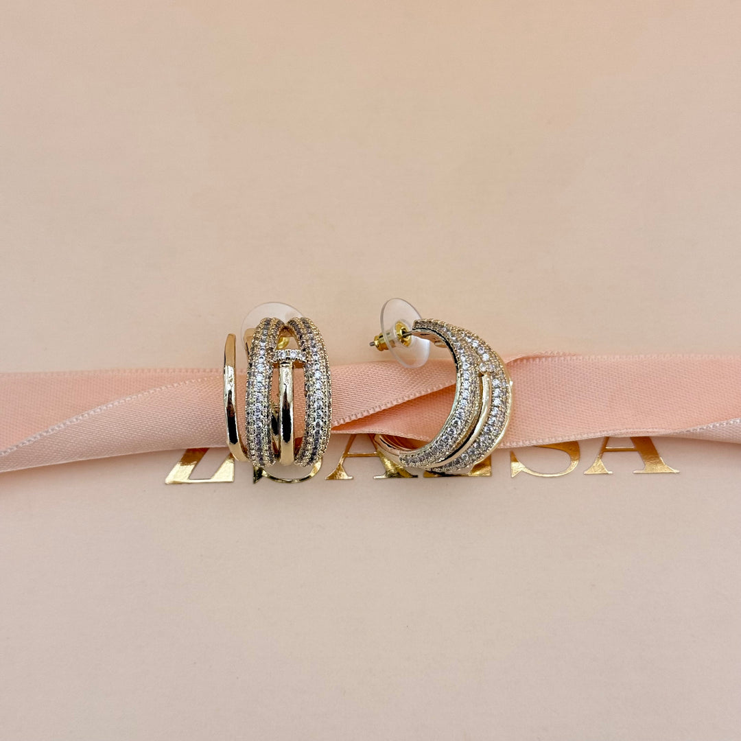 Chunky triple hoop zircone gold plated