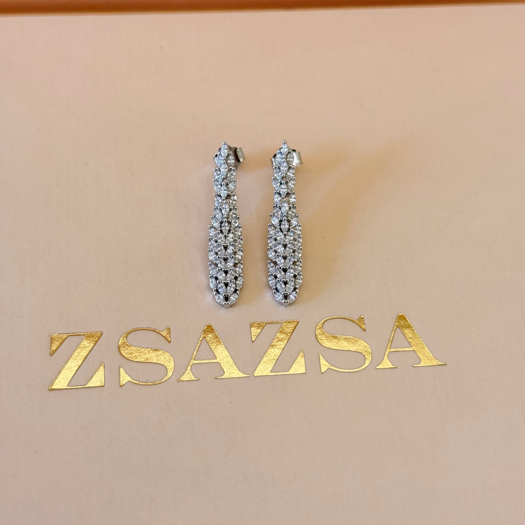 Long marquise zircone silver earrings