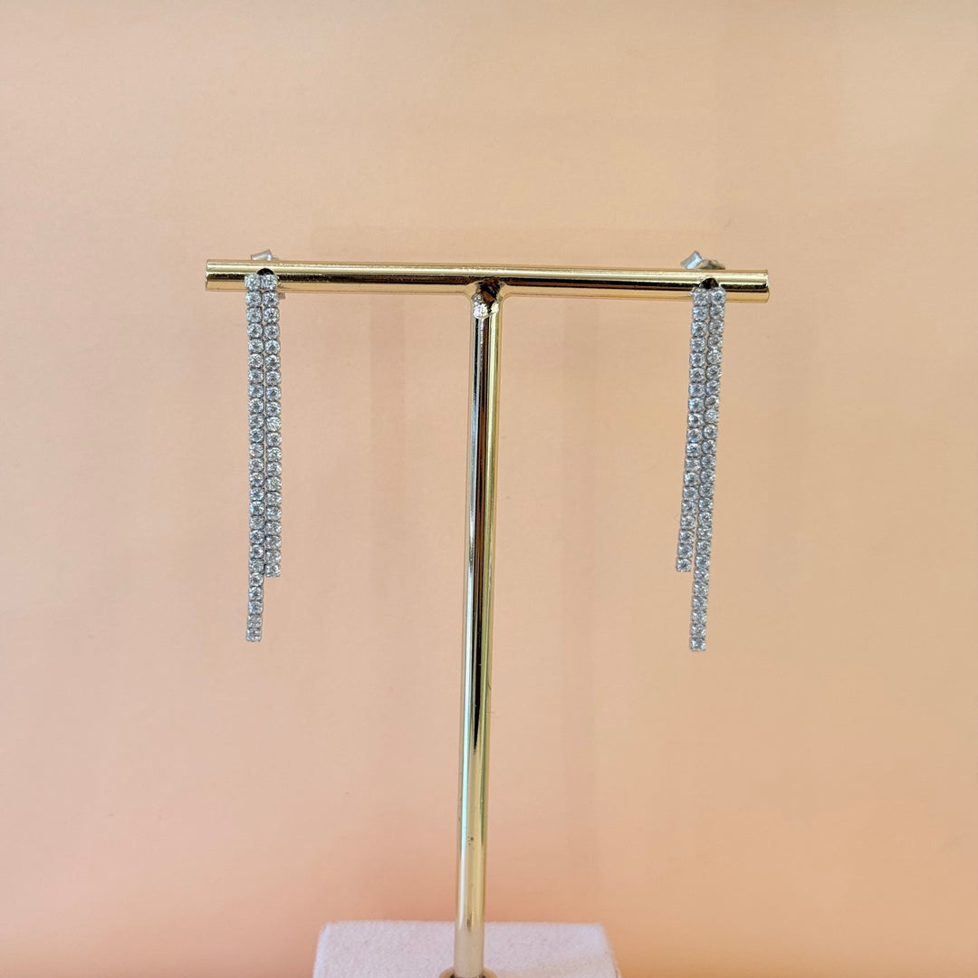 Double fringe zircone sterling silver earrings