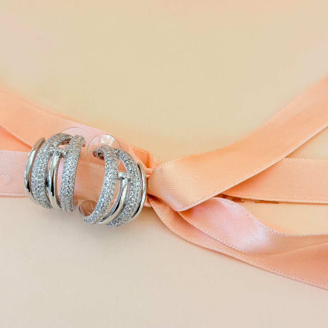 Chunky triple hoop zircone silver