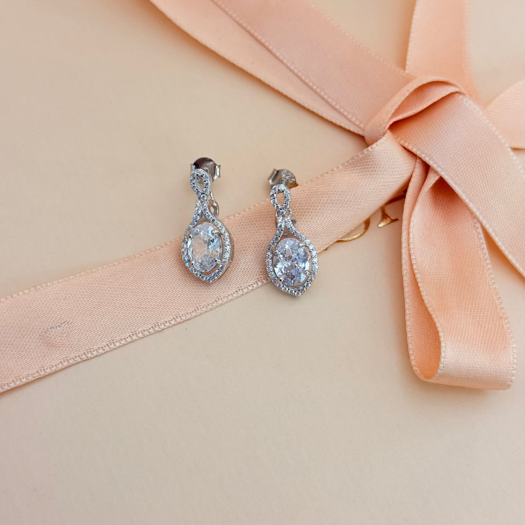 Oval dangle zircone sterling silver earrings