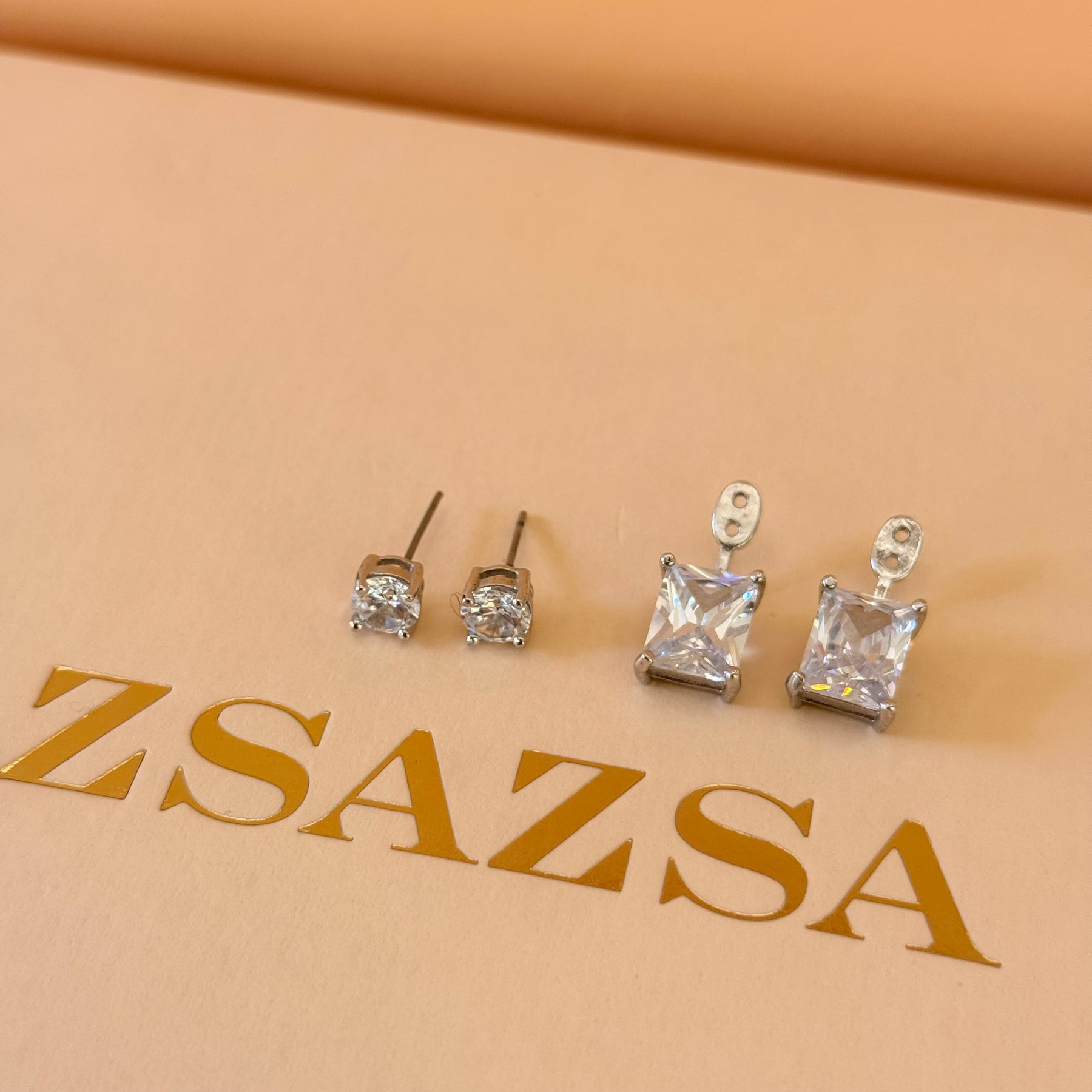 Introducing our 2 in 1 zircone white gold plated earrings, perfect for any occasion. Get the best of both worlds with a versatile accessory that adds a touch of elegance and something different to your outfit. Upgrade your jewelry collection with these beautiful and unique earrings.
