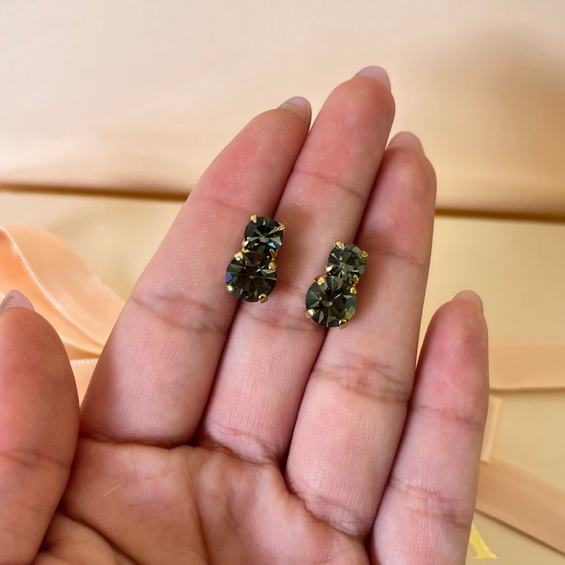 Add a touch of elegance to your look with these grey double preciosa crystals studs. The small size makes them perfect for everyday wear, while the gold plating adds a luxurious touch. The double round shape of the crystals adds a unique and eye-catching element to these classic studs.