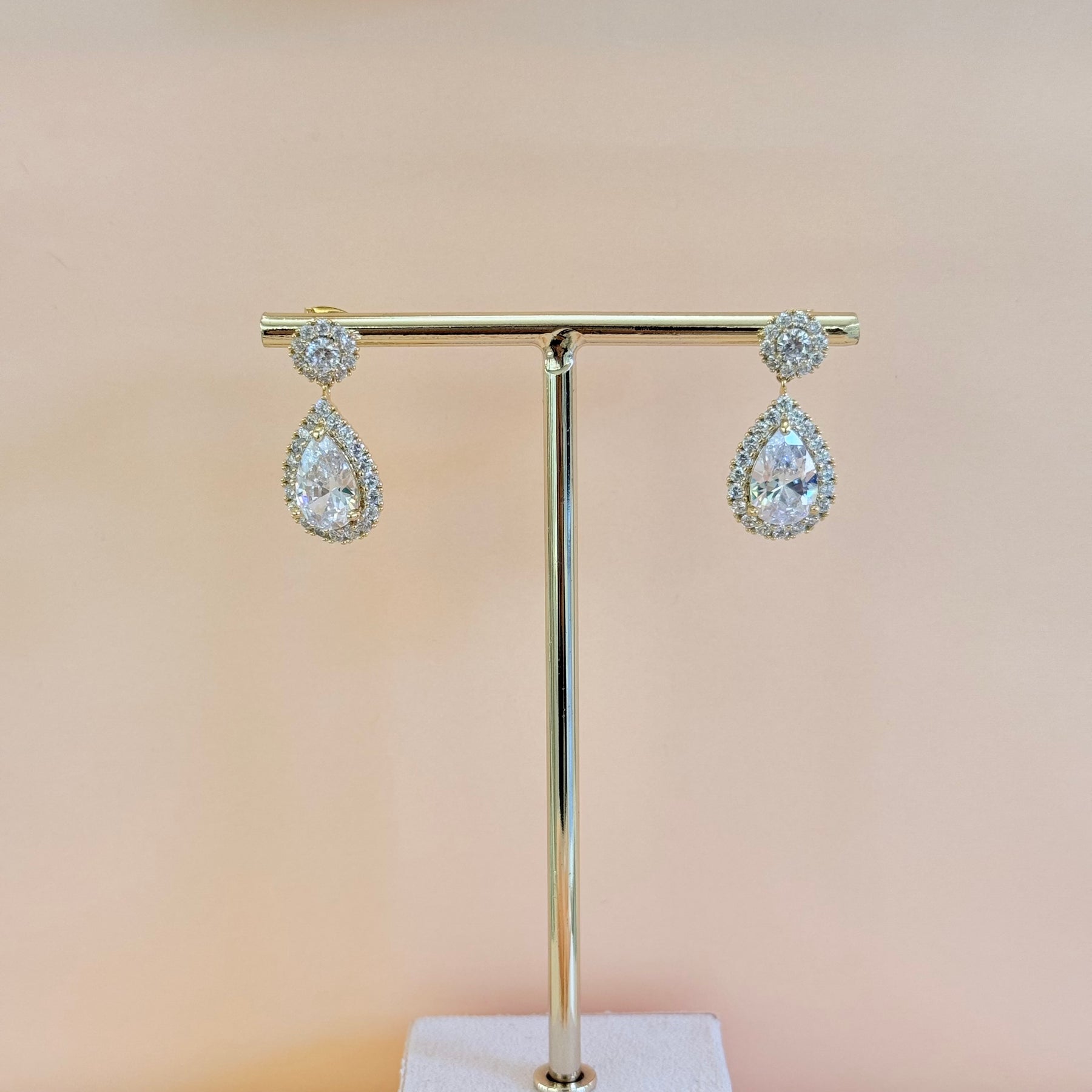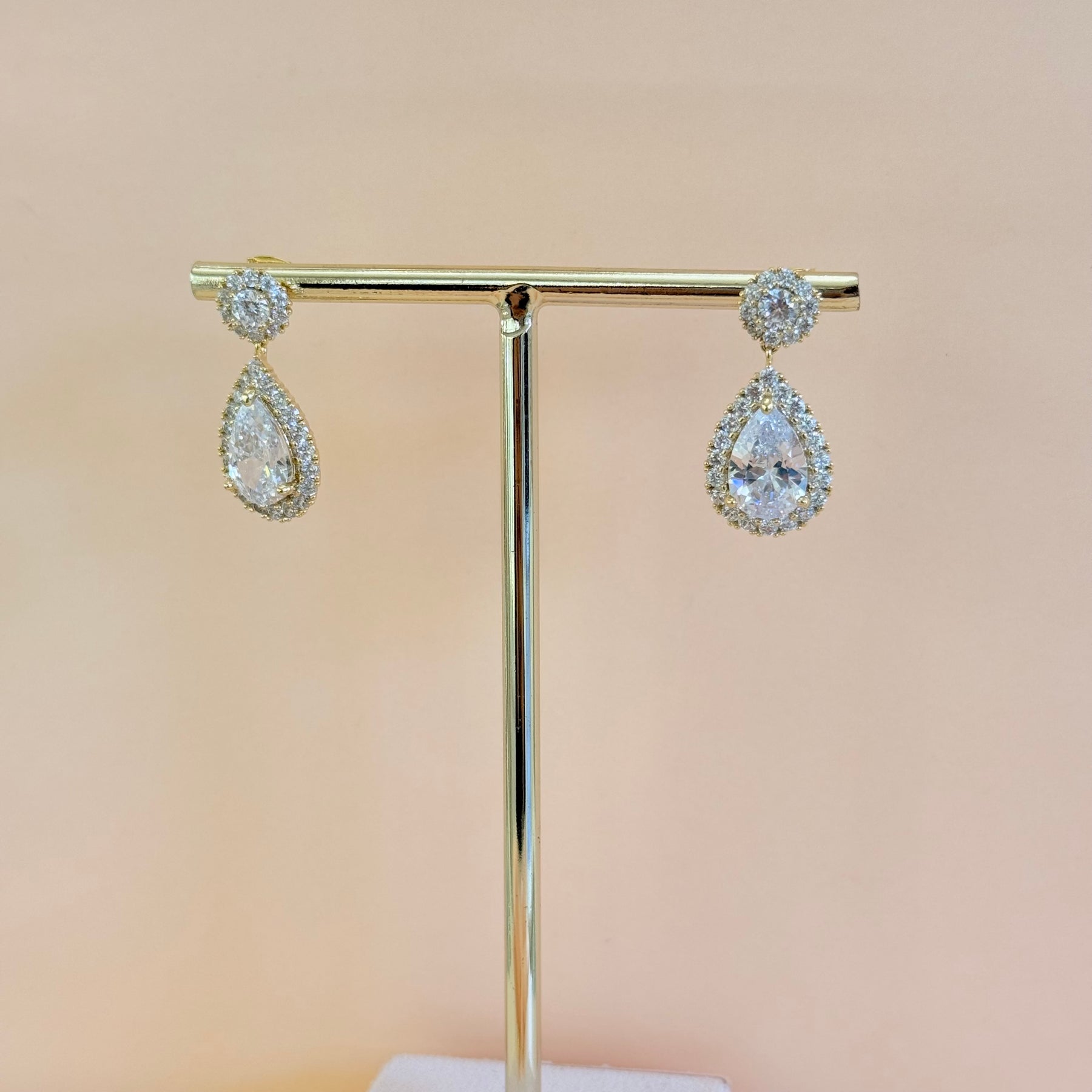 Elevate your style with our Round and Teardrop Zircon Gold Plated Earrings. Perfect for any occasion, these earrings add an elegant touch to any outfit. Polish your look with a touch of luxury and sophistication.
