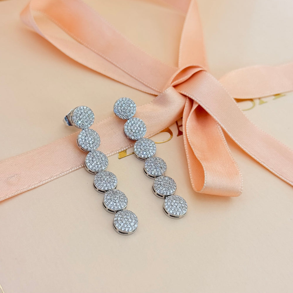 Elevate your special occasion look with these elegant Rounds silver zircone earrings. The white gold plating adds a touch of luxury, perfect for a bride or mother of the bride/groom at weddings. Make a statement with these stunning earrings.