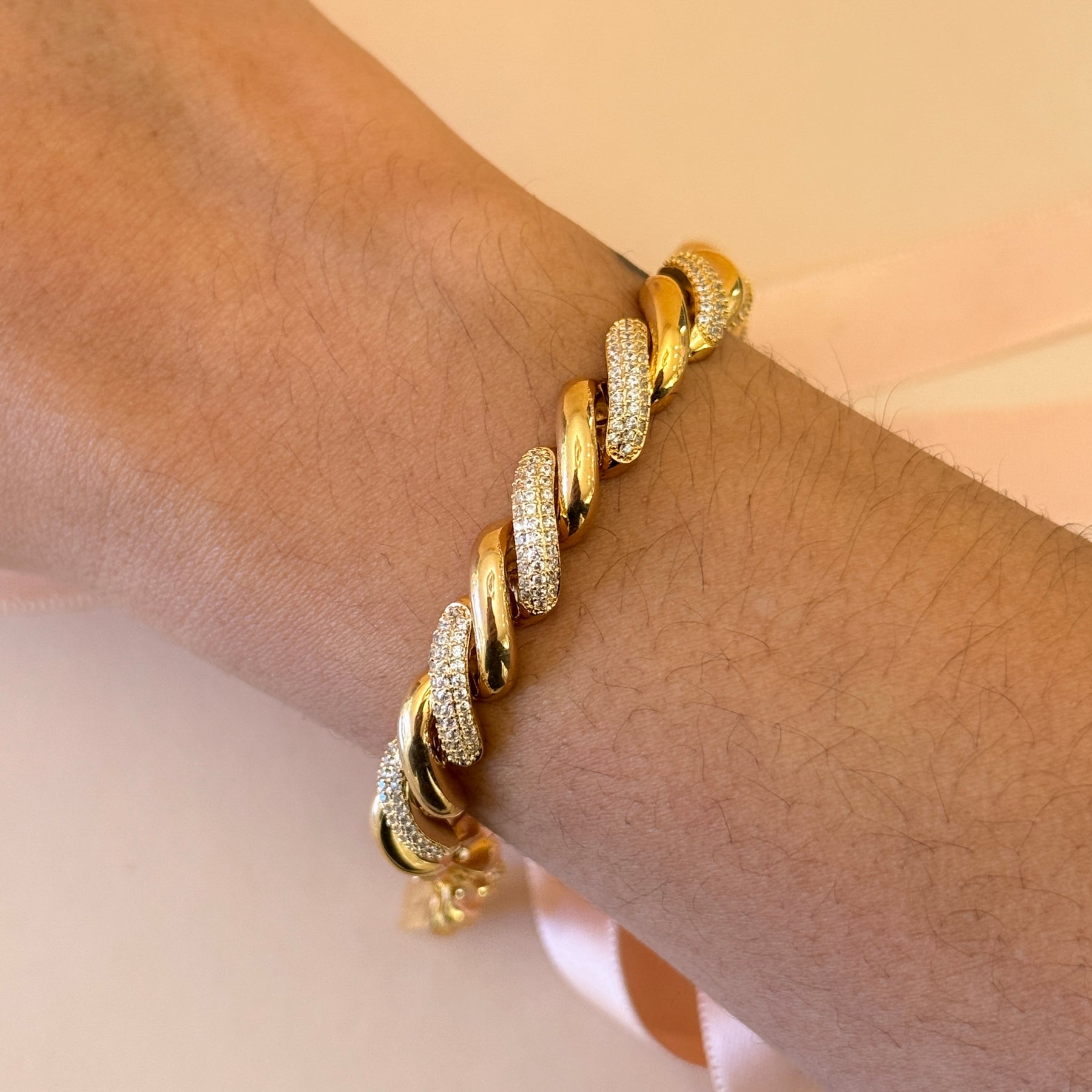 Twisted zircone gold plated hoops and bracelet set