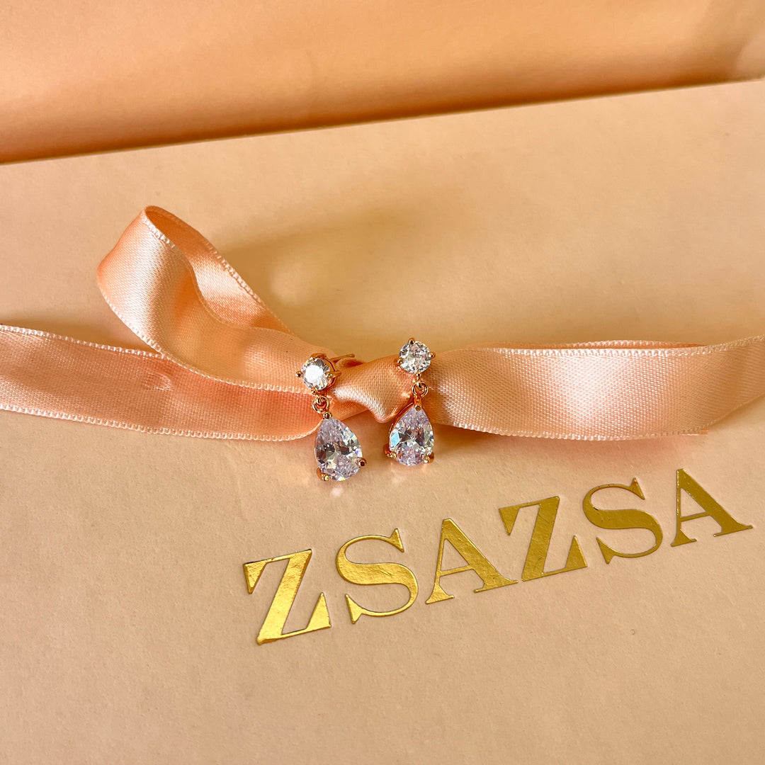Teardrop zircone rose gold plated earrings