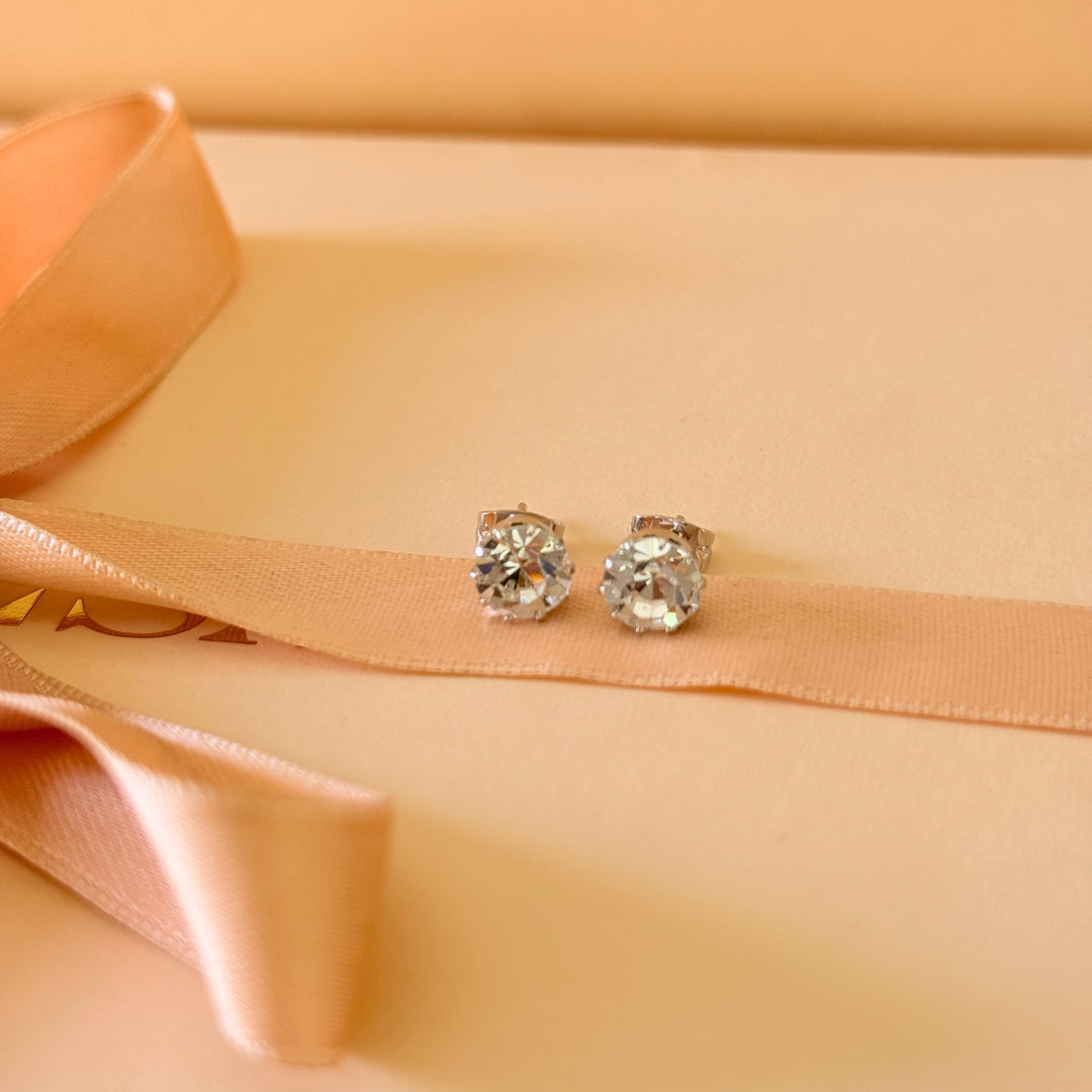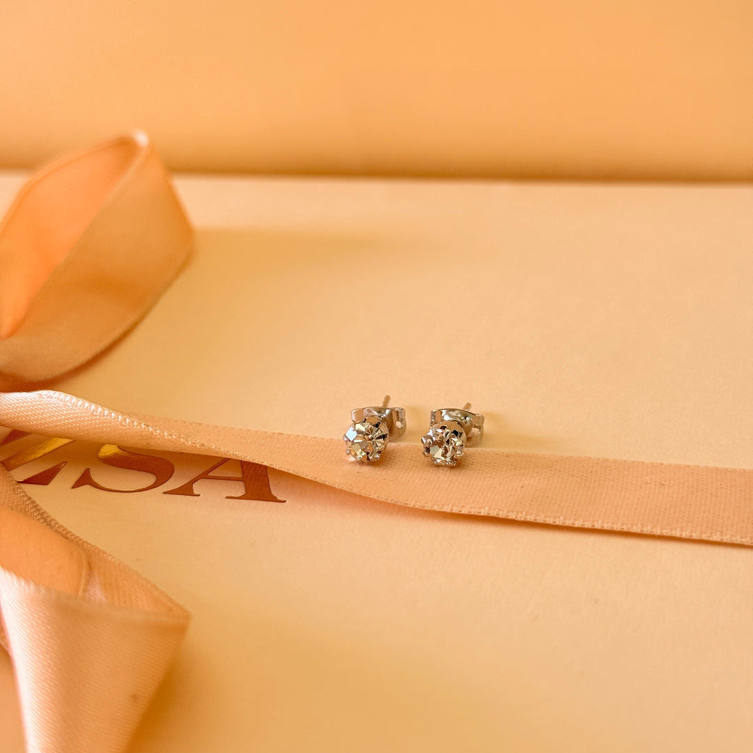 Small solitaire Swarovski crystals silver studs