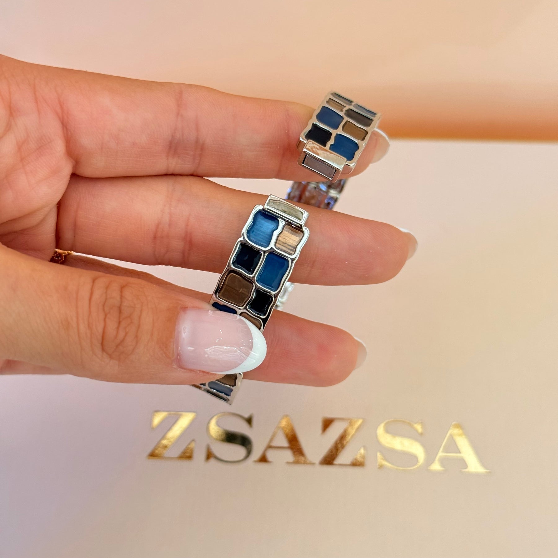 Experience the exquisite beauty of our White gold Plated Enamel Set in Blue and Bronze. Perfect for adding a pop of color to your casual outfits, this set glows with effortless style and elegance. Made with high-quality materials, it's a must-have for any fashion lover. Indulge in its captivating beauty now!