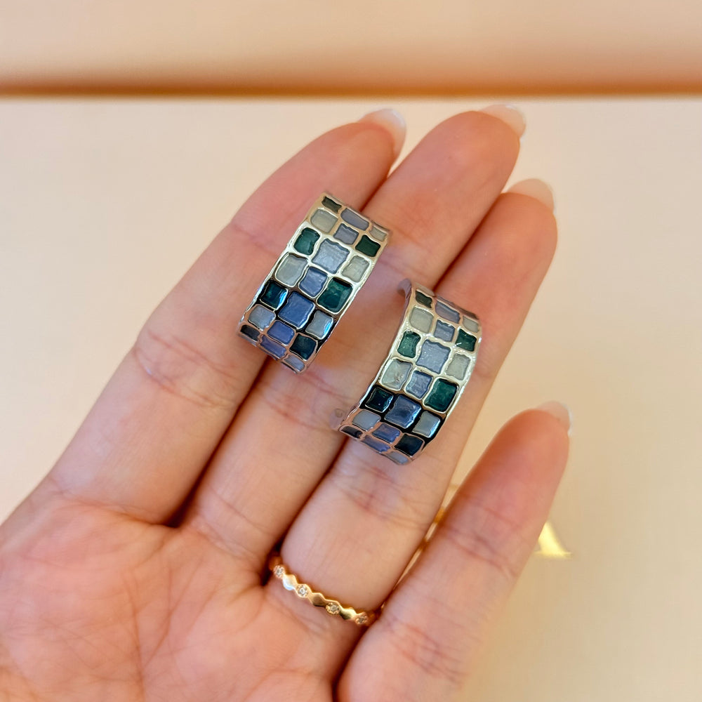 Experience the exquisite beauty of our White Gold Plated Enamel Set in Blue, green and Bronze. Perfect for adding a pop of color to your casual outfits, this set glows with effortless style and elegance. Made with high-quality materials, it's a must-have for any fashion lover. Indulge in its captivating beauty now!